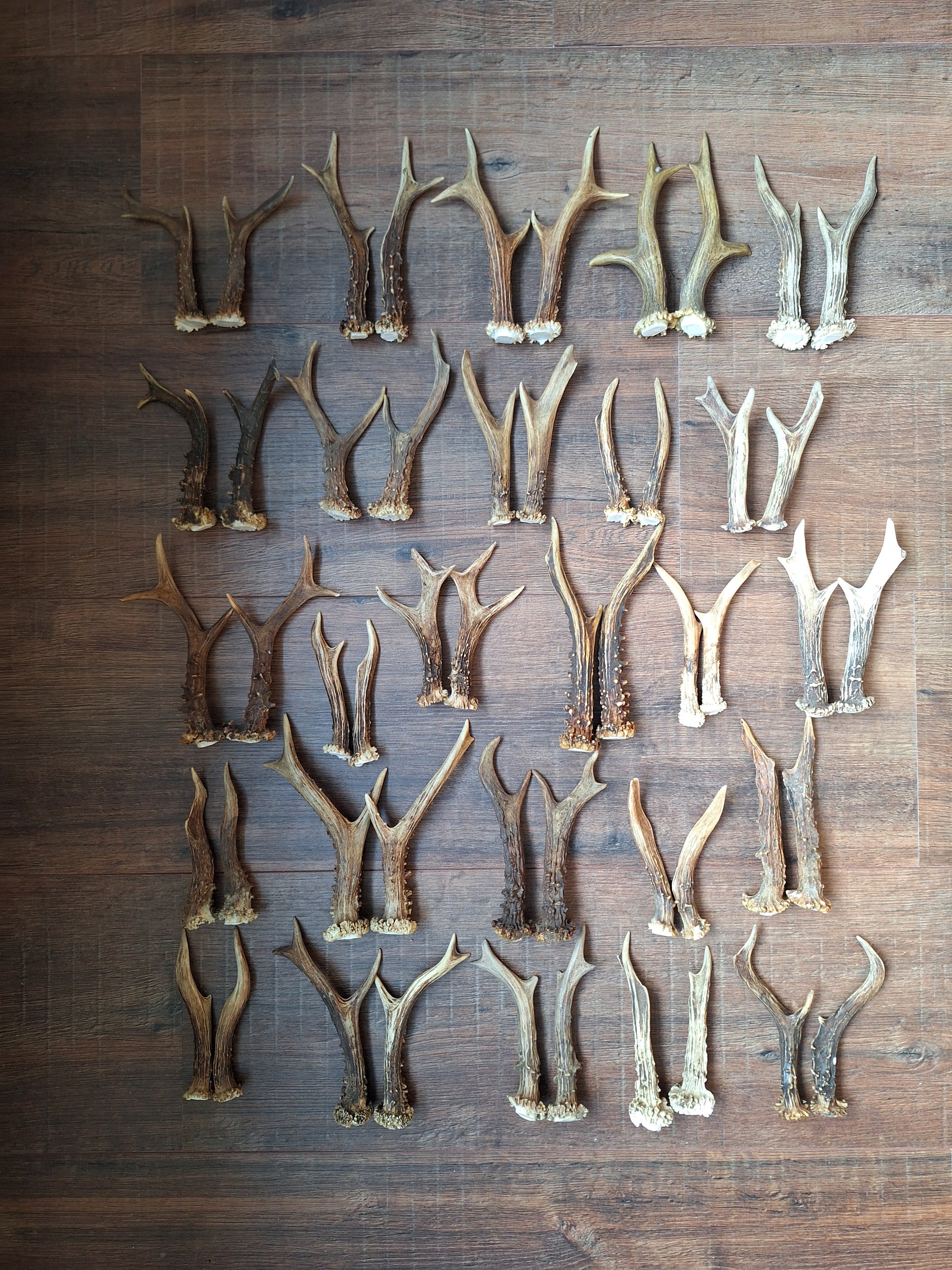 Sizes of the antlers vary between approximately 14 and 20 centimeters length (measured in a straight line, next to the antler).