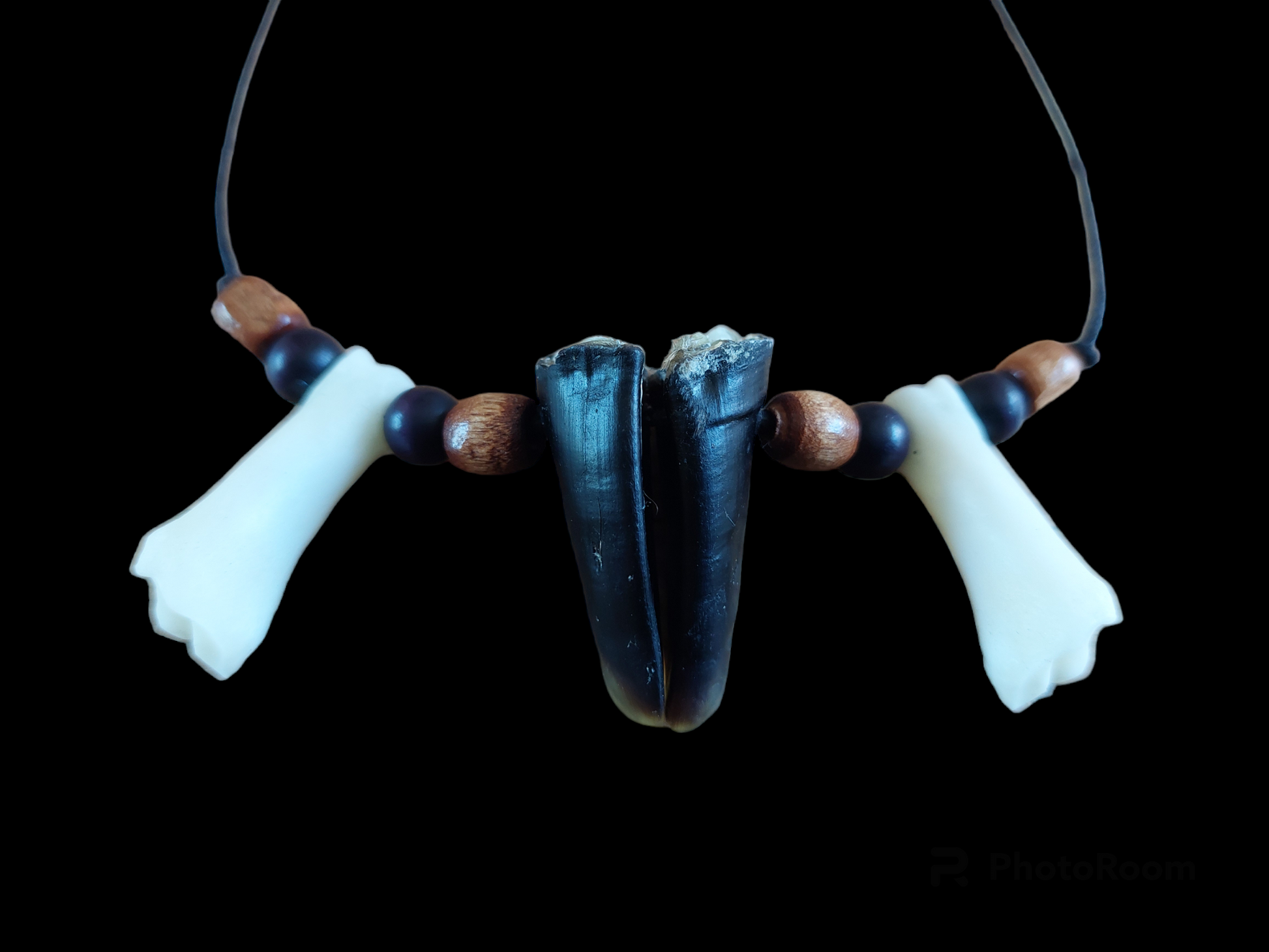Amulet necklace made with two foot bones and two hooves from a dutch roe deer.