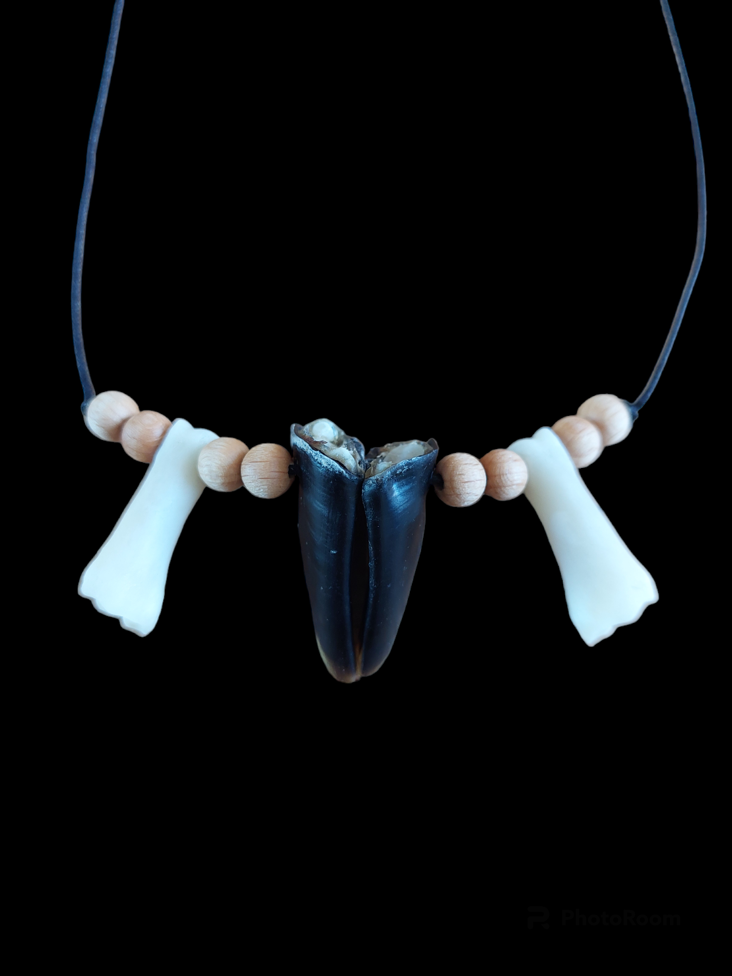 Amulet necklace made with two foot bones and two hooves from a dutch roe deer.