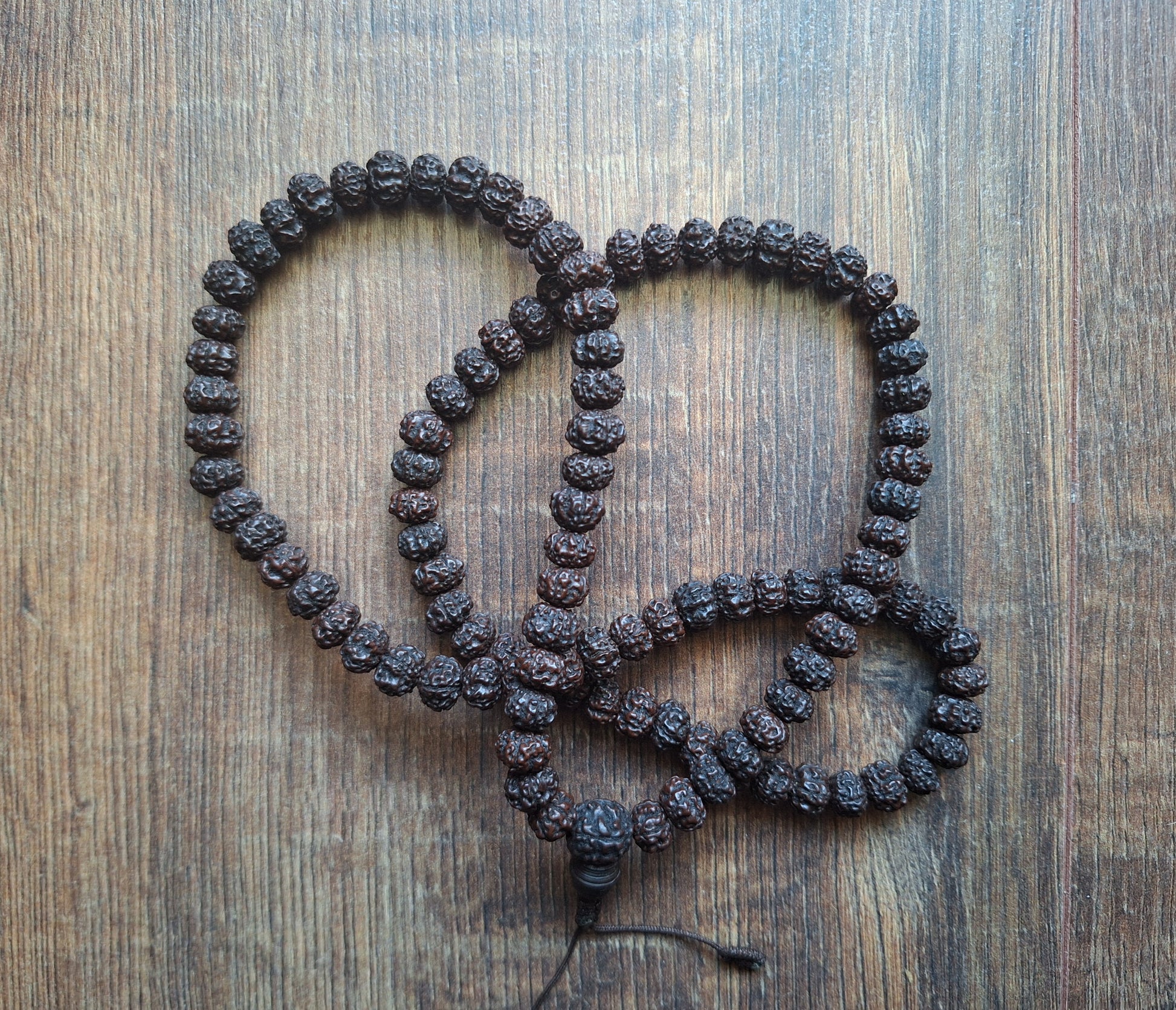 In different traditions there are of course many variations in the appearance of the prayer beads; for example in how many beads are strung on the cord or from which material the beads are made. Mala’s with a buddhist origin often are made with 108 beads, in many eastern traditions a sacred number with different symbolic meanings. It refers to, for example, the 108 names of Shiva, the 108 different kinds of desire that obscure our human minds or the 108 Upanishads, sacred Sanskrit texts sharing wisdom in the last part of the Veda’s.