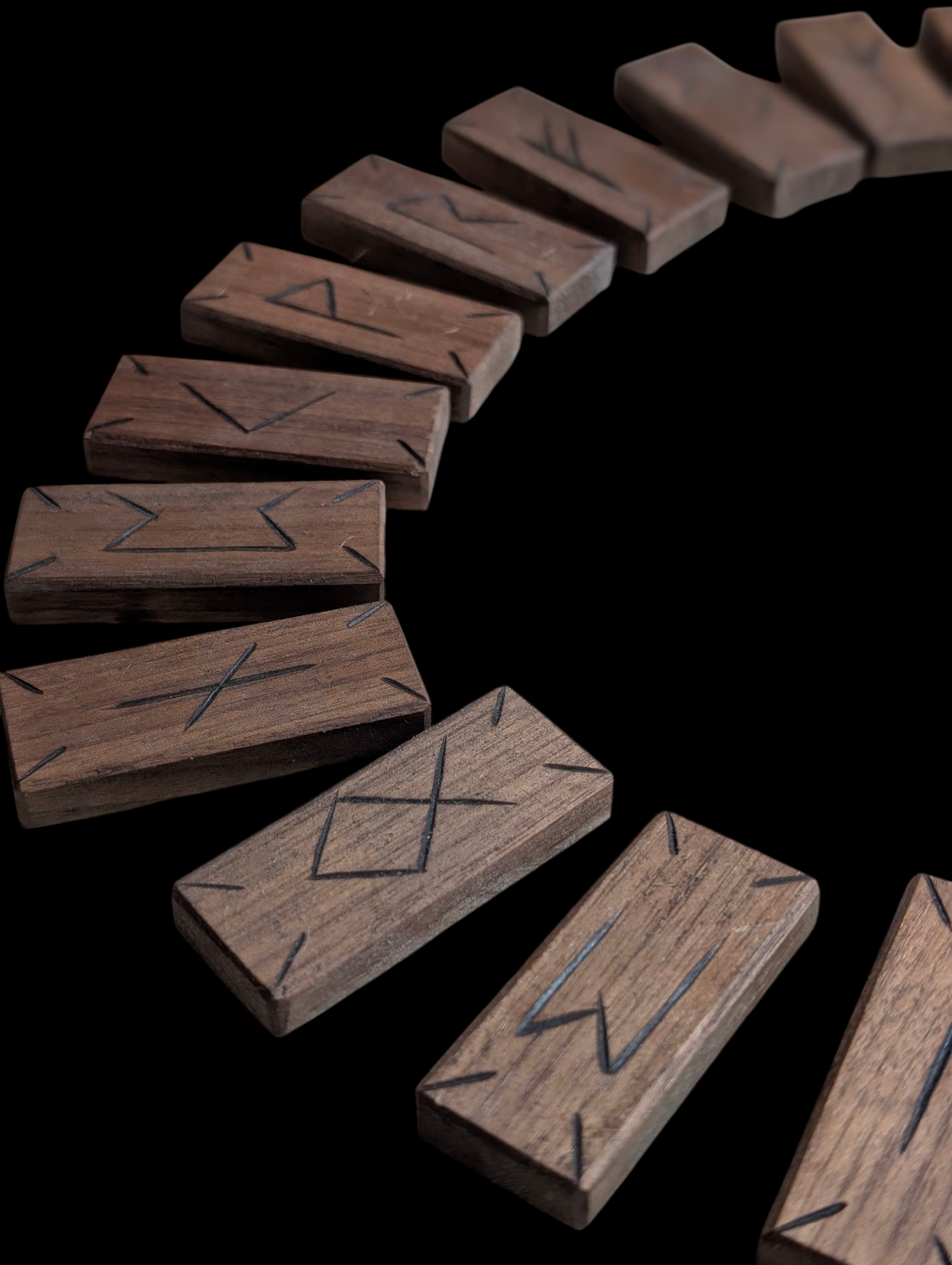 Runes are a very important part of our magical European heritage. No one knows for sure the deep secrets of the runes and no modern book is often accurate on their meaning except the old lore from the sagas. Runes in Dutch were called "ruin" and they mean "Whisper" and "secret". Runes were put on attributes, carved and inket with blood to bring them alive. Magical tools but also important everyday working tools such as knives and axes. They were combined to make runic binds and staves and live on in old Dutch familymarks and gravemarks. There exist the oldest known runic "alphabet" called "futhark" and there are also the younger alphabets called the Anglo-Saxon Runes and the Frisian runes.