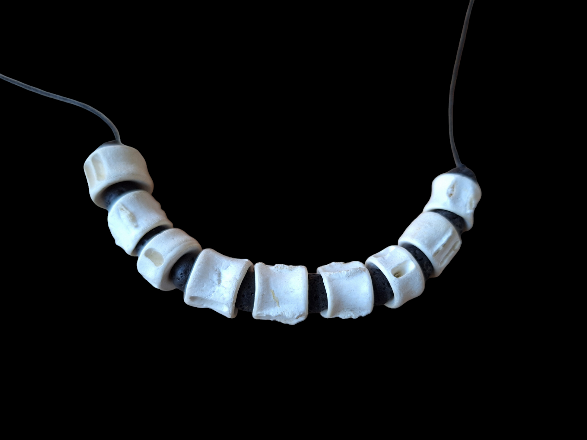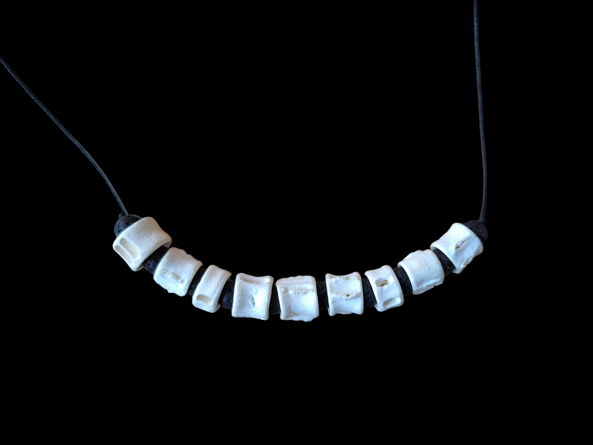 Shark vertebrae and lavastone amulet necklace