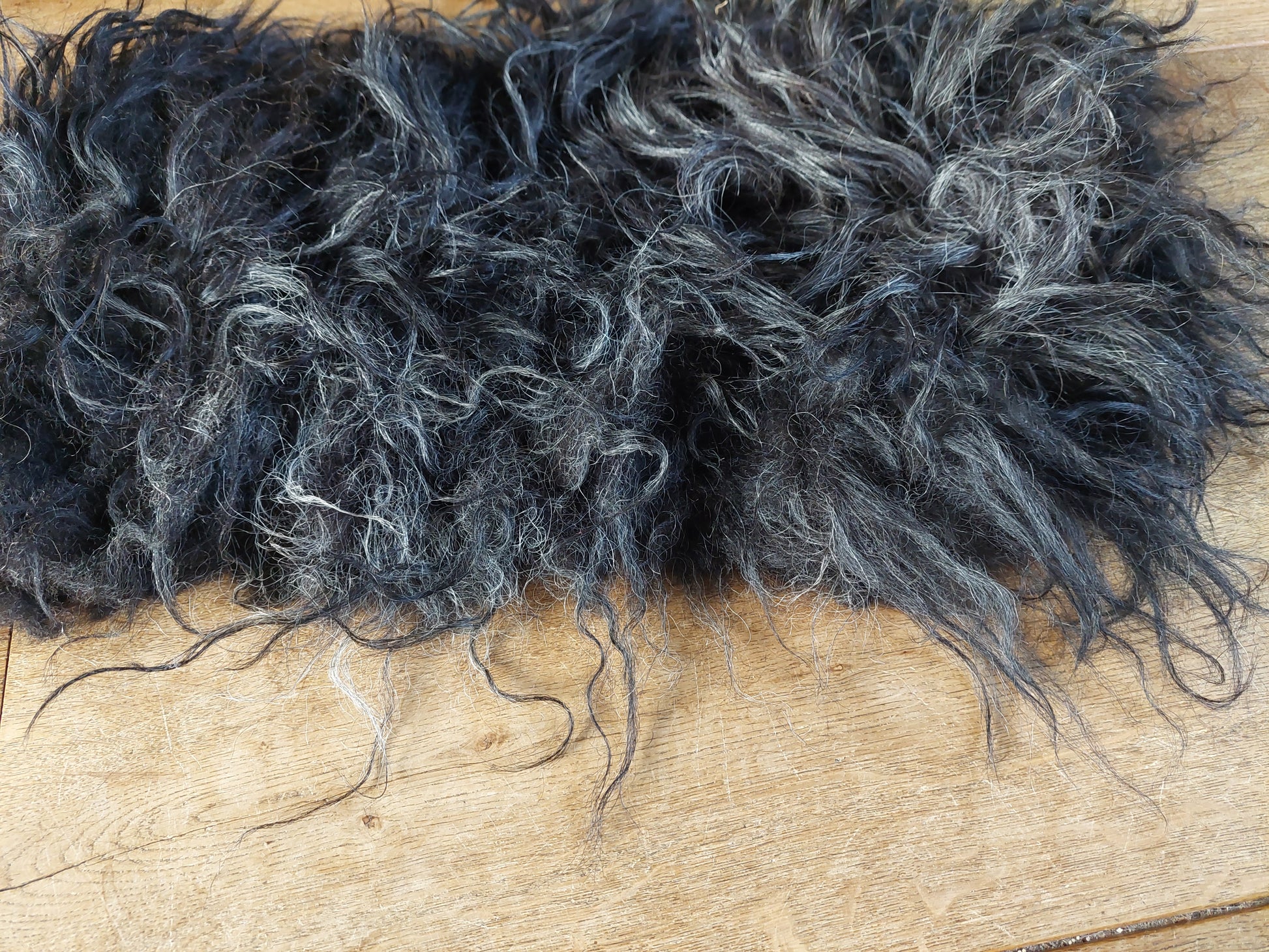 Very nice piece of sheep hide in a black - dark grey color. Soft and supple skin with long, wild hair. A very nice item for all your personal (ritual) handcrafting purposes.