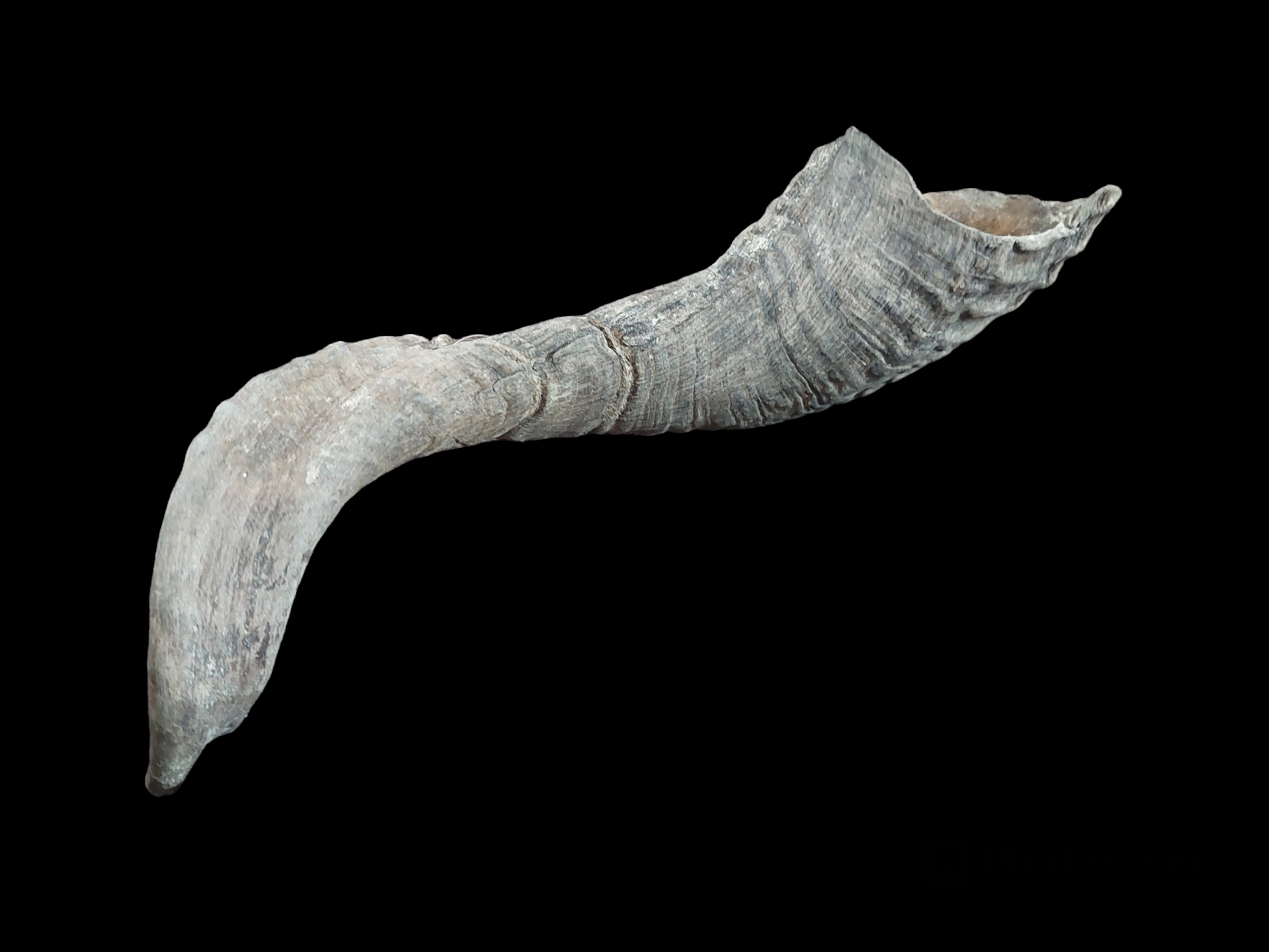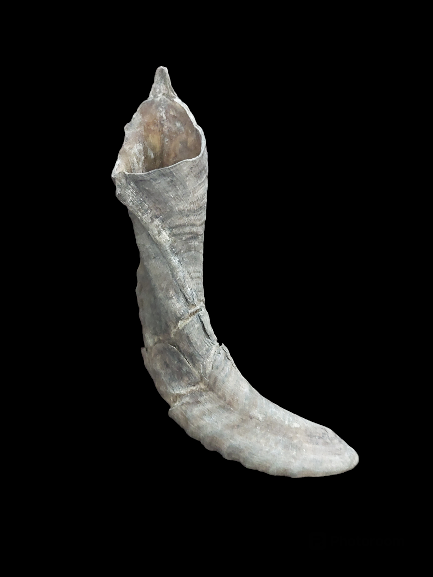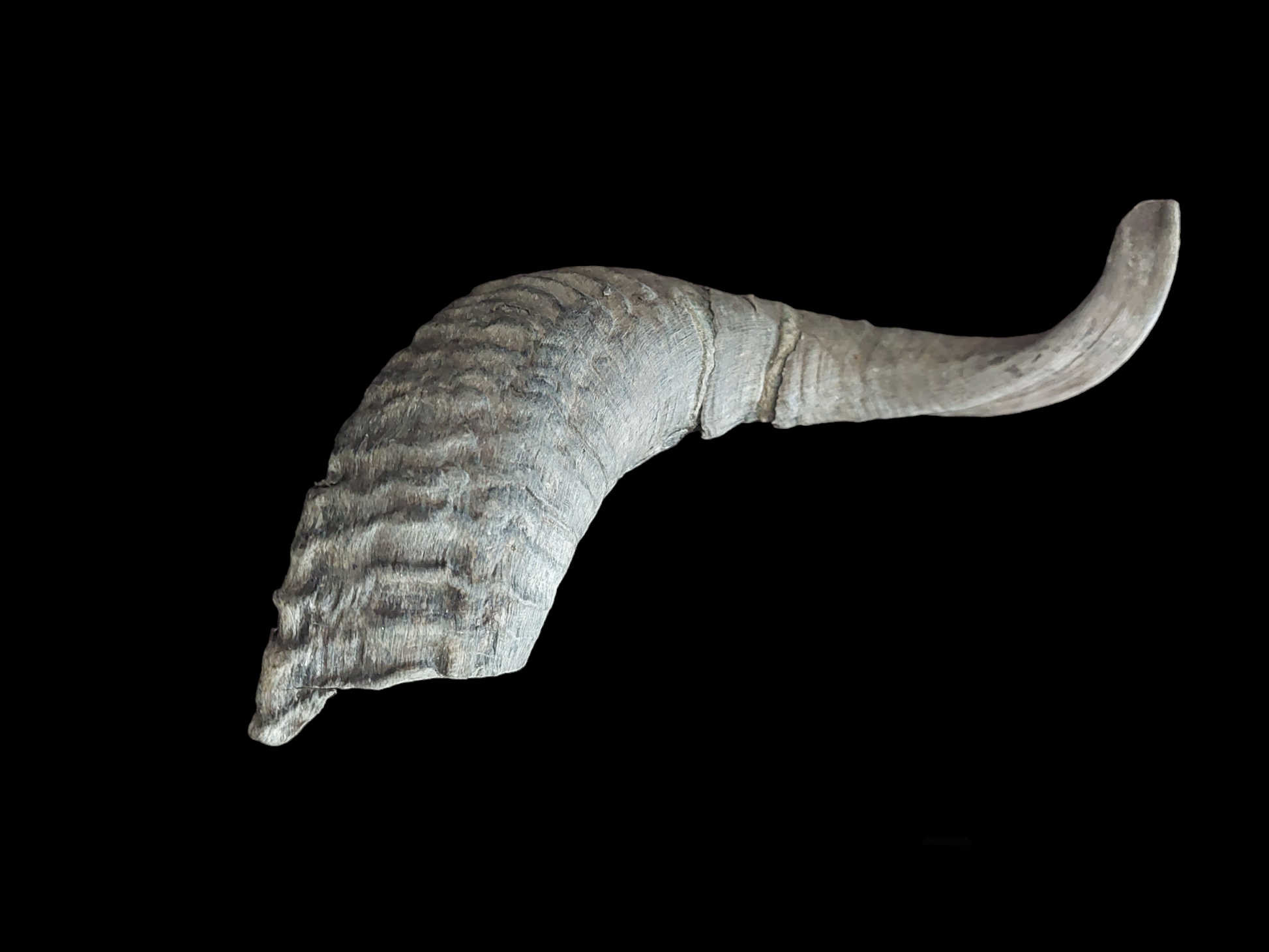 Please note; as can be seen on the pictures, the outer layer from this horn is a bit ragged and shows some damages. This is the natural condition of this horn, and therefore you might even say it has more 'character'. But since this might cause it to be a little less usefull for some purposes, this horn is labelled and priced as B-quality.