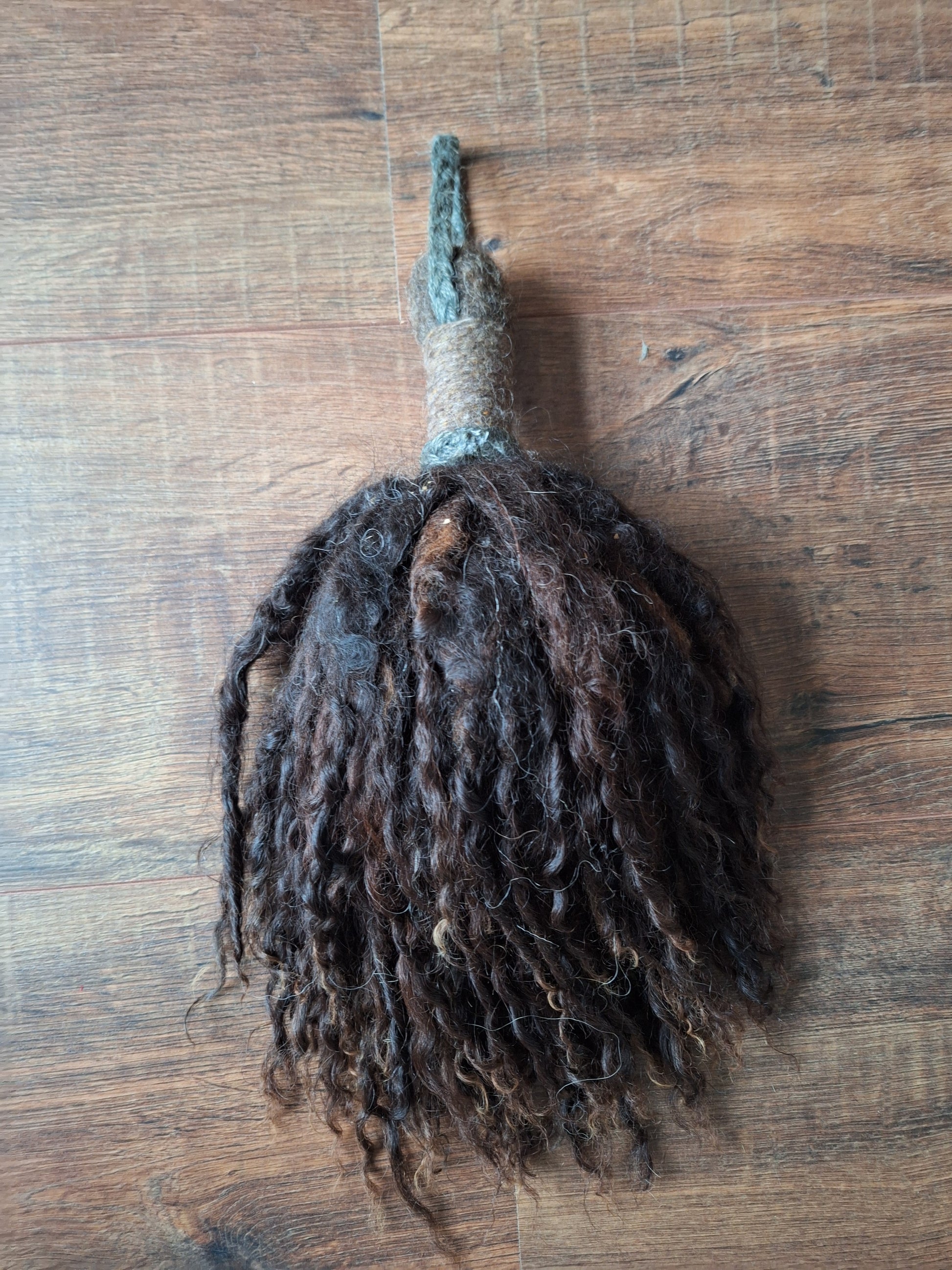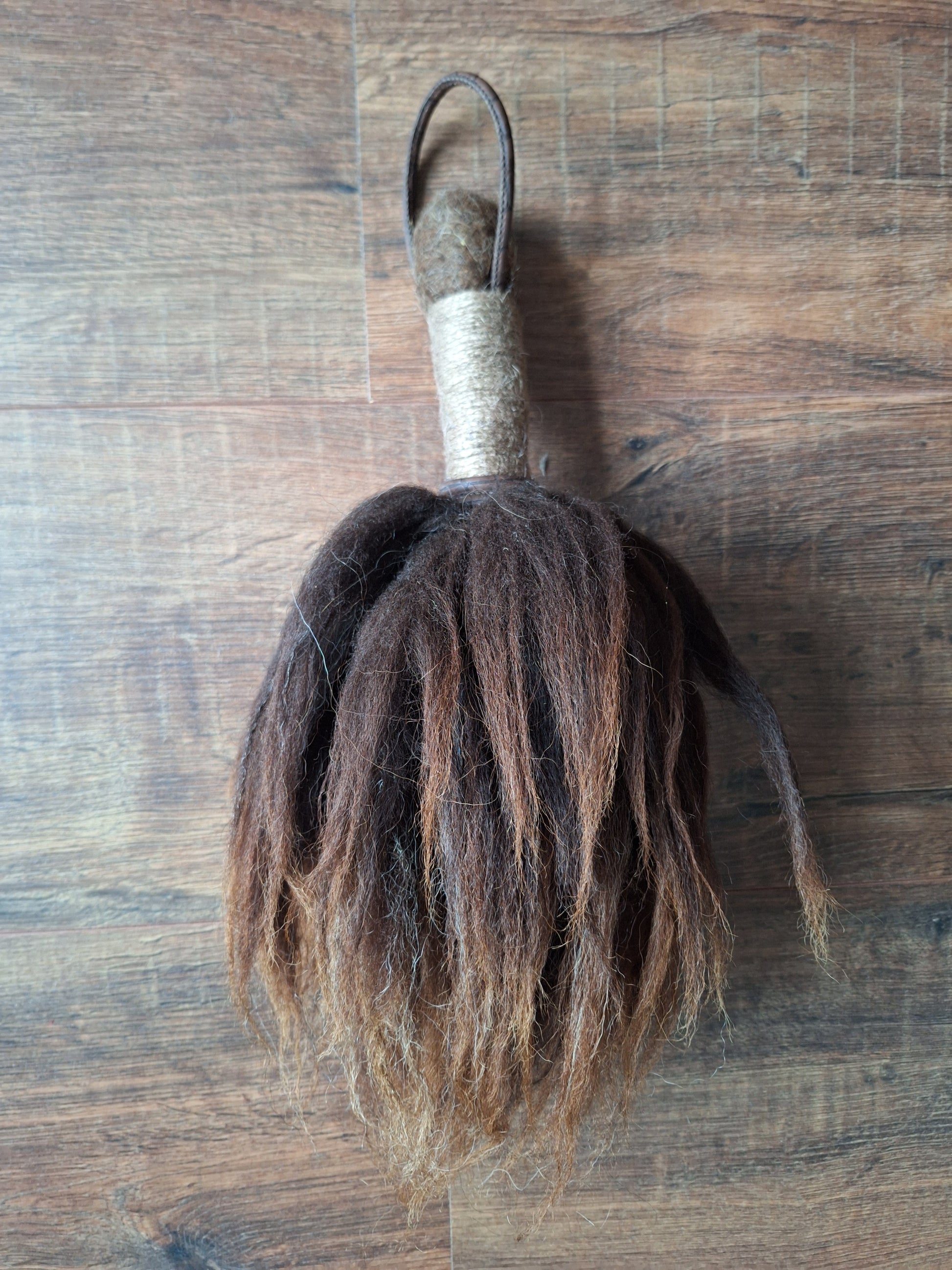 These beautiful bundles can be used for many purposes. Use them for example in your spiritual-energetic cleaning practices, to 'brush' heavy or stuck energies out of someone's energyfield (like a somewhat softer version of the traditional shamanic kamcha-whip). Or to wave and distribute the smoke from incense or herbs around in a room or in the direction of your spirit dolls.