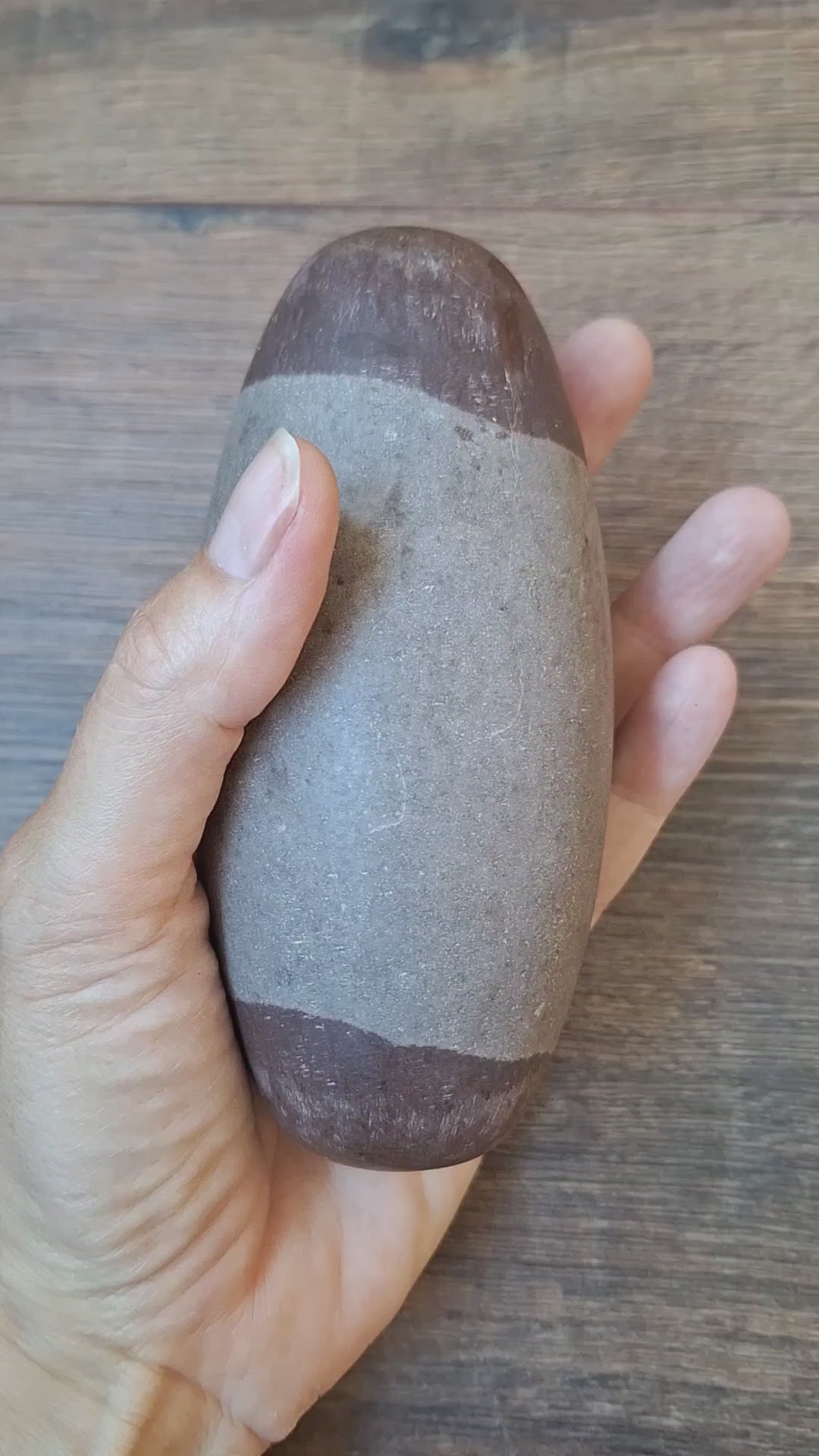 Most of them come from one of the 7 sacred sites (Sapta Gangas) along the banks of the Narmada river in India, where they are gathered once a year (by people from families with ancestral rights to do so) during a specific Hindu ceremony. Tho they might have a somewhat oval shaped model by nature, they are mostly tumbled and polished into this balanced and harmonious shape.