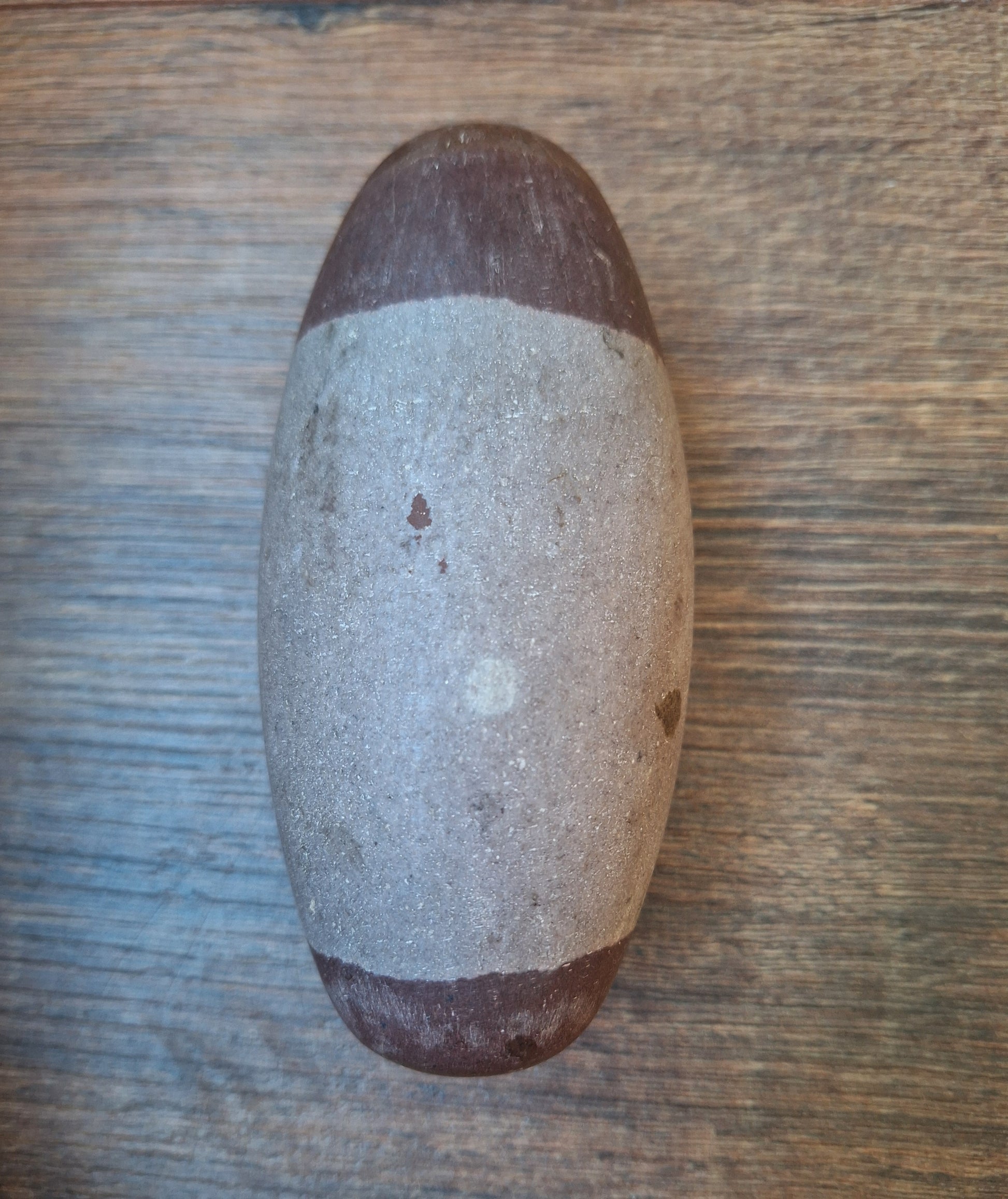 The Shiva Lingam stones are combination stones (aggregates) containing mostly cryptocrystalline quartz (chalcedony) and inclusions of iron oxide, agate, jasper, and other minerals. They often have a base color in shades of light brown, beige and grey, with patterns of stripes, patches and dots in warm red and dark brown colors.
