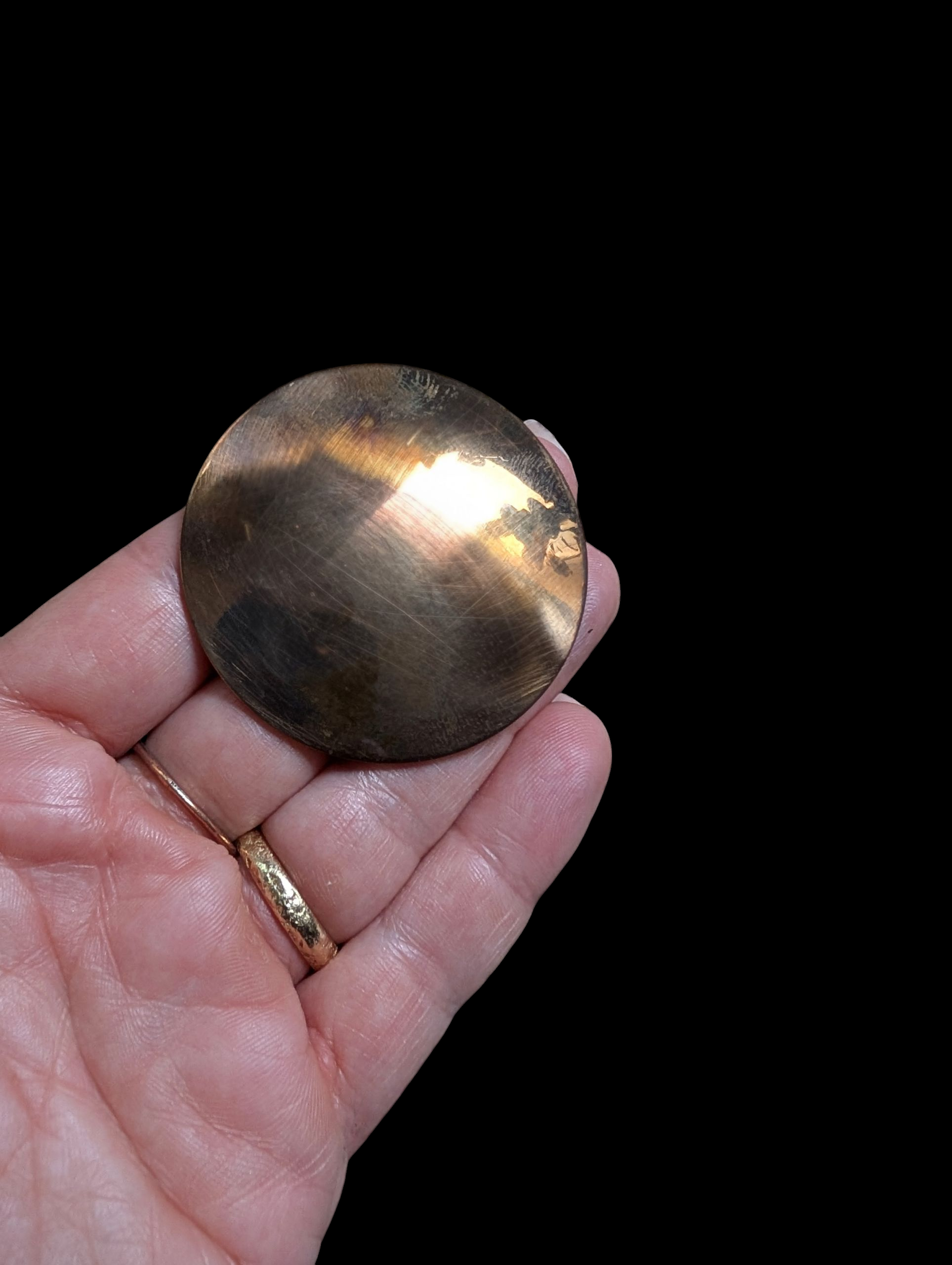 High quality copper mirror, especially made for us in "Spirit of Wolf" style. Handmade here in the Netherlands by talented blacksmith Nordic Ironwork. This mirror has a diameter of 5 centimeters.