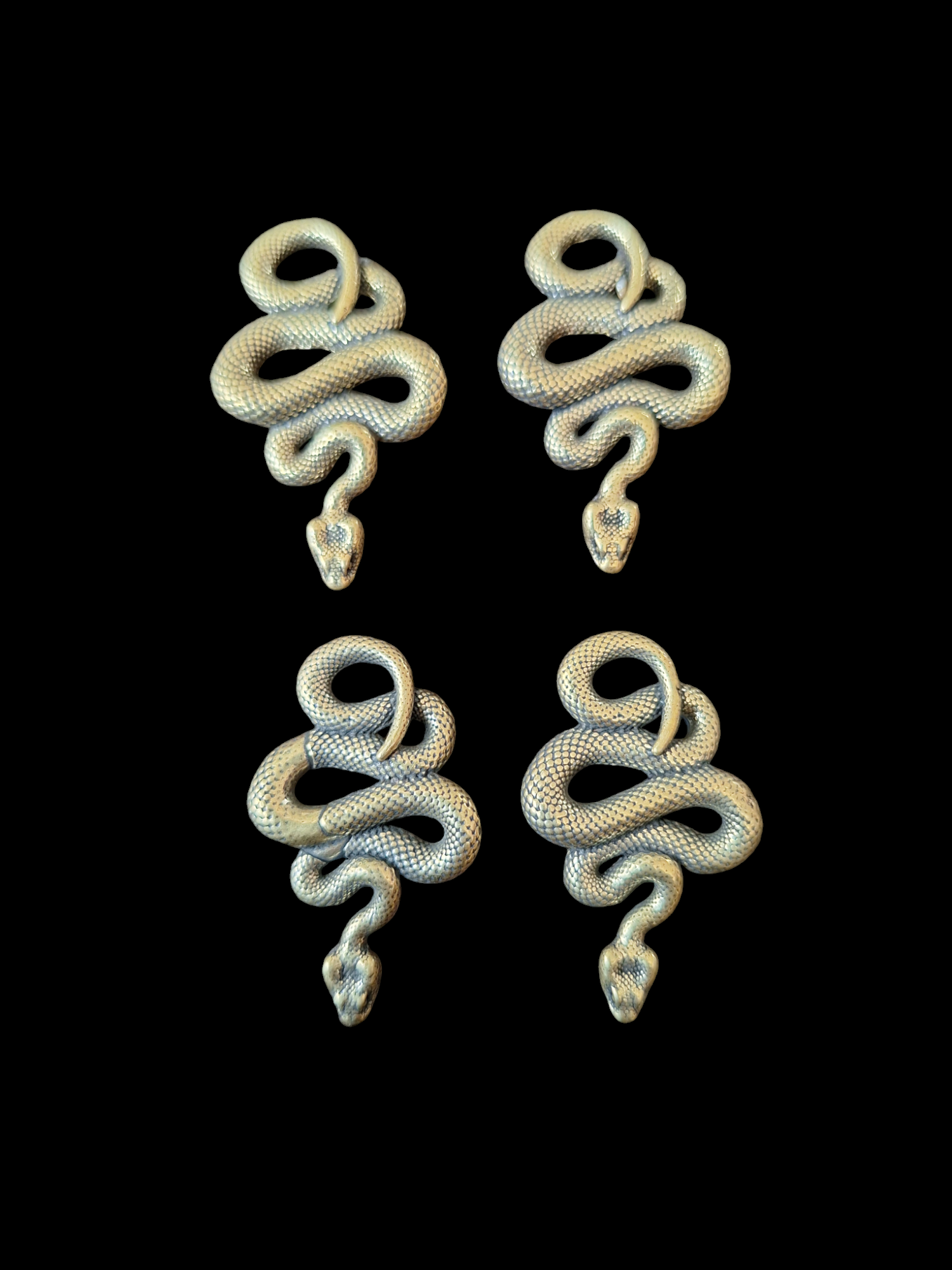 Size; approximately 40 millimeters long and 24 millimeters wide. Weight: approximately 10 grams. They are nicely decorated on both the front- and the backside and can be hung on a simple cord or necklace for use as a personal amulet or be attached to your ritual clothing or attributes. Please note; these pendants don't have any specific eyelet, instead you can just adjust your cord or thread in one of the snake's coils.