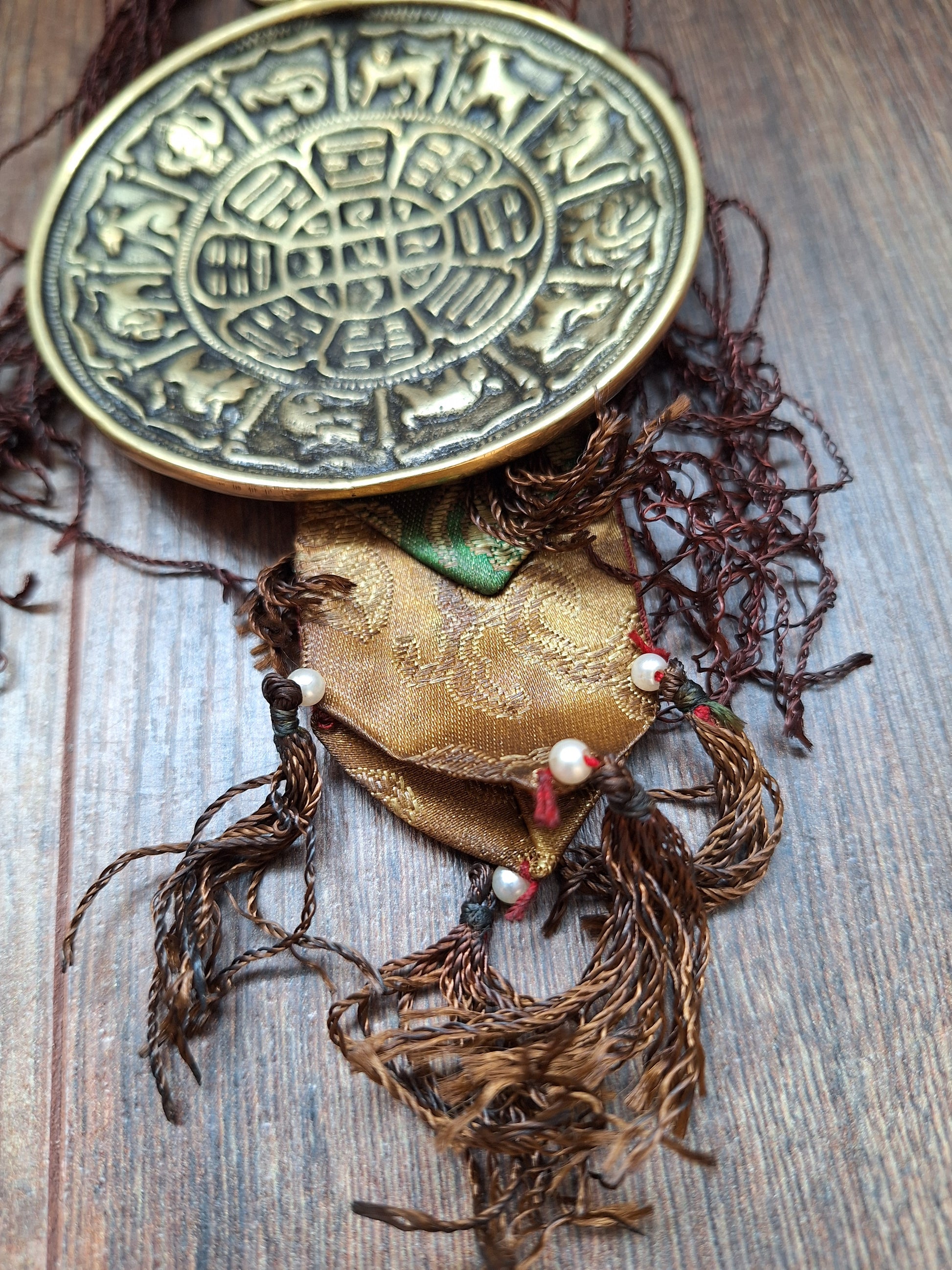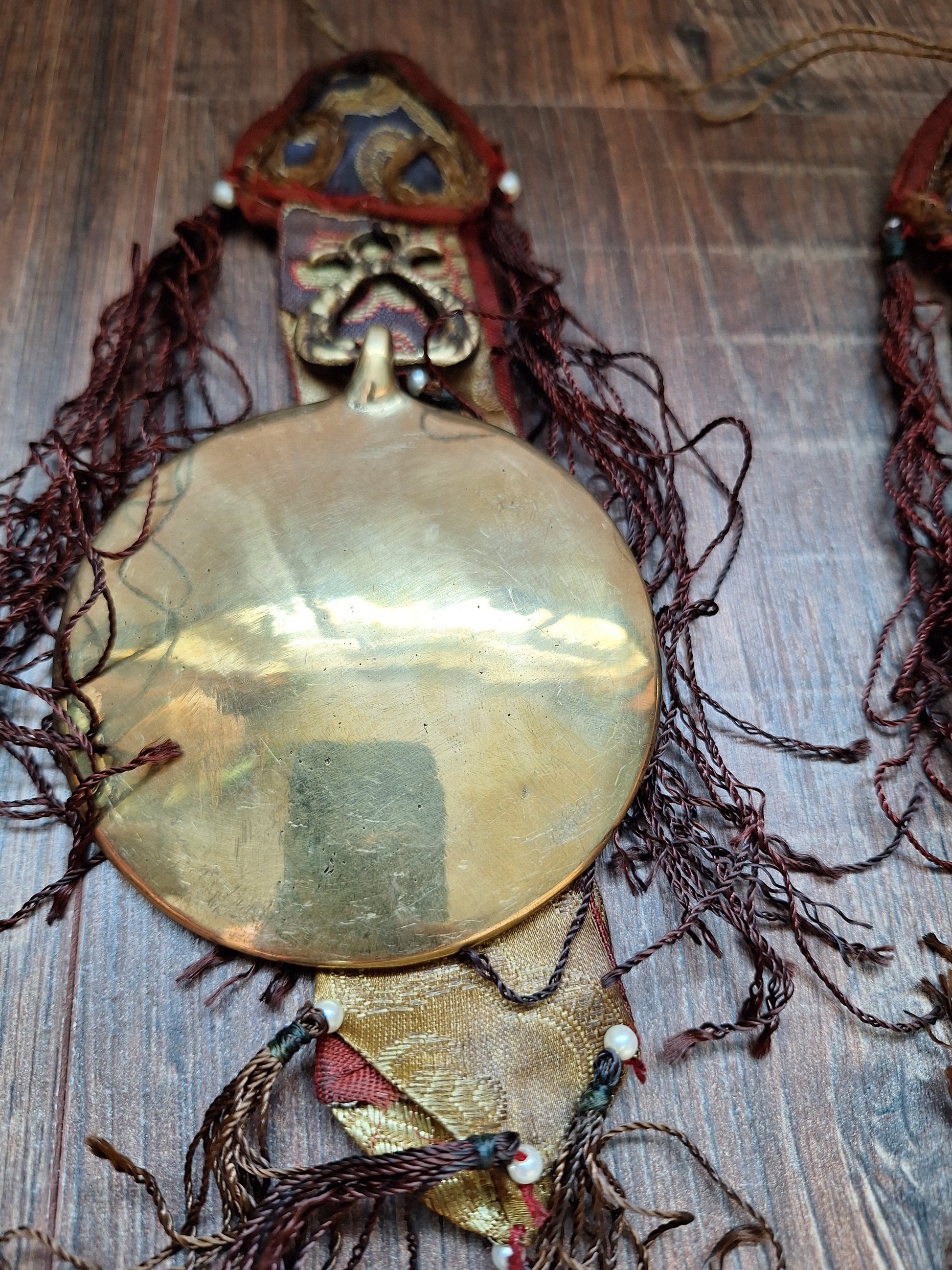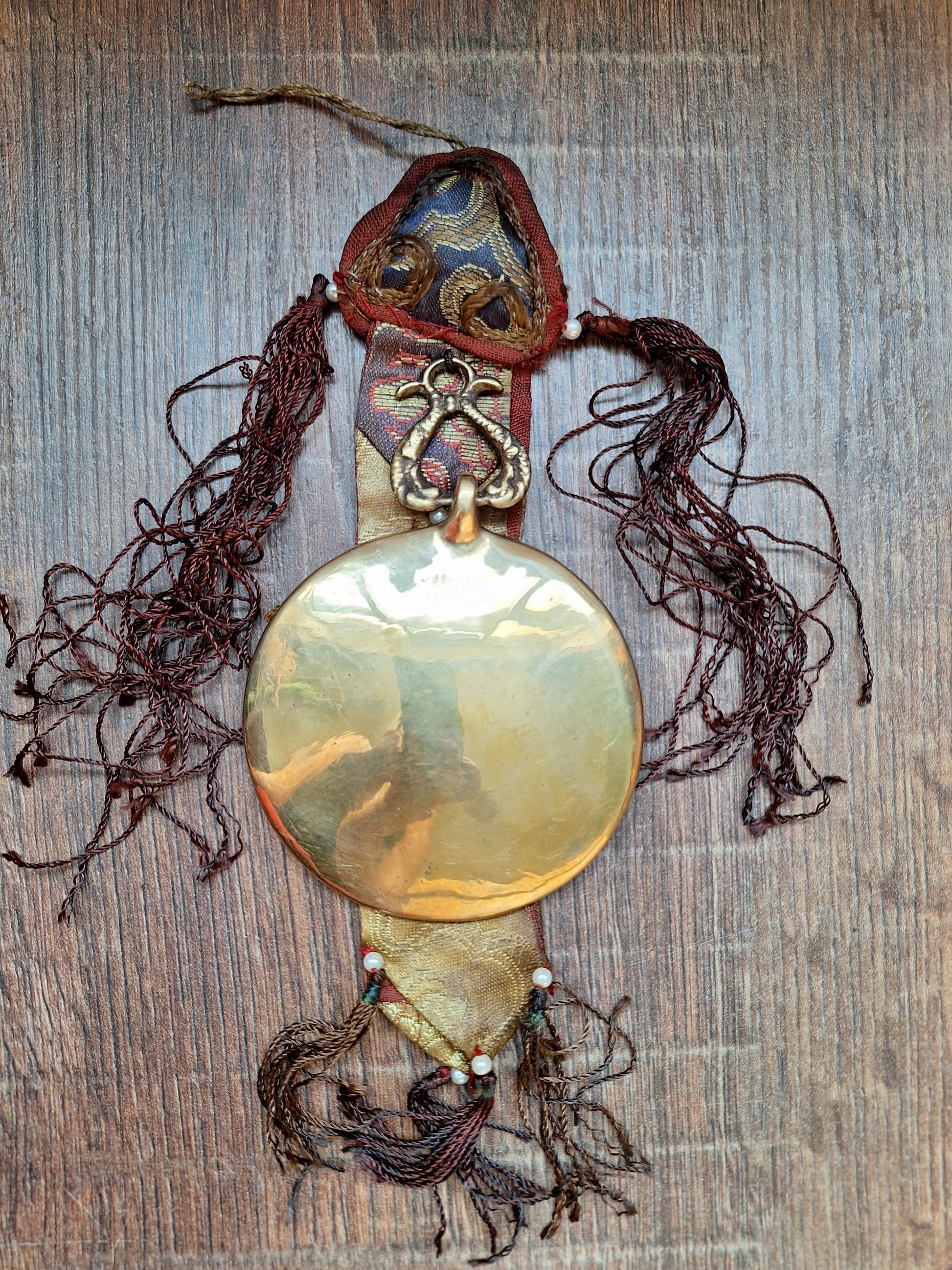 These amulets are from vintage origin and might show some signs of their age and previous usage, but overall both the fabric and the mirrors are in good condition (if you happen to find some small scratches or dull spots on the mirrors, a good (metal)polish treatment works miracles).