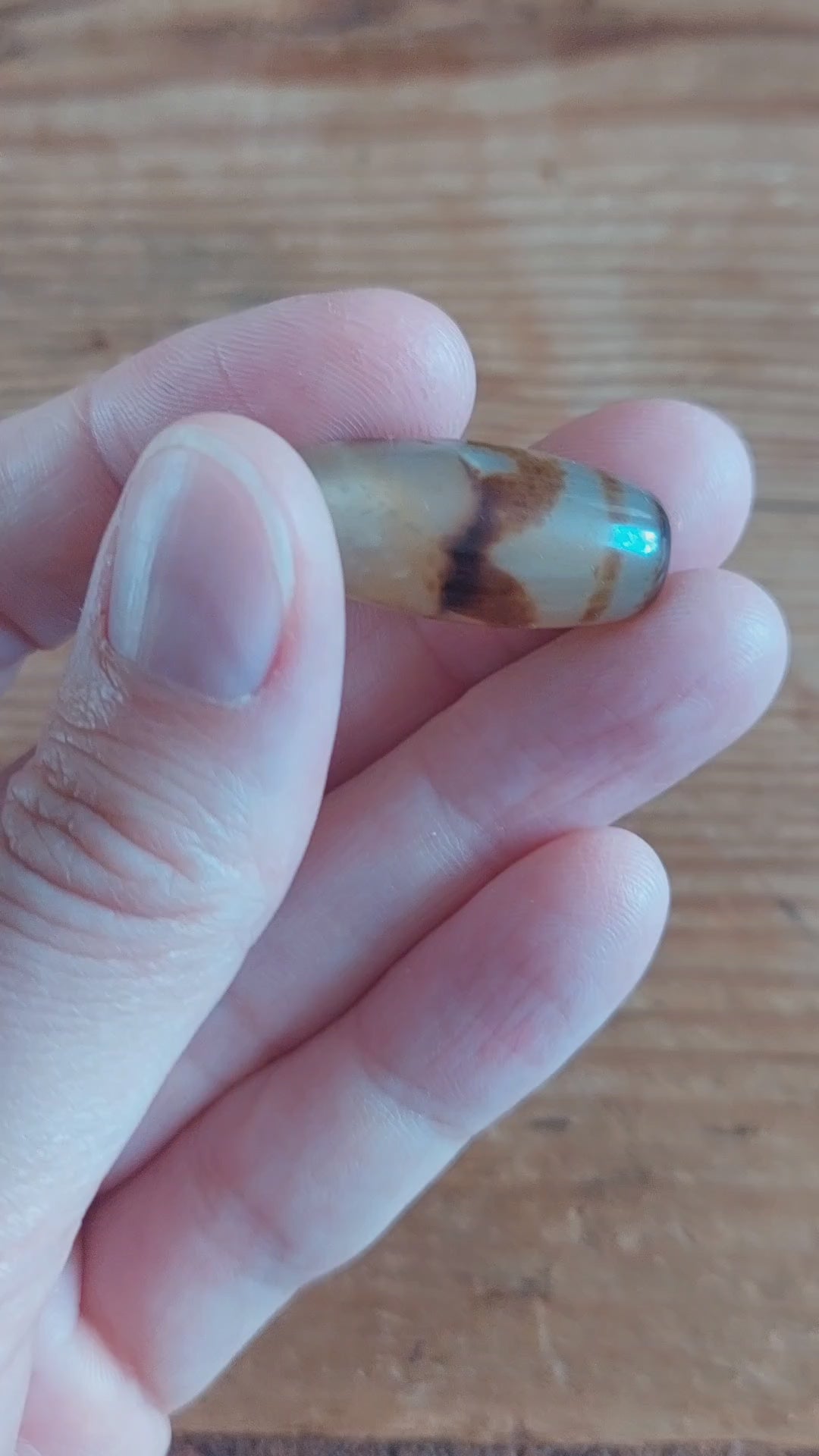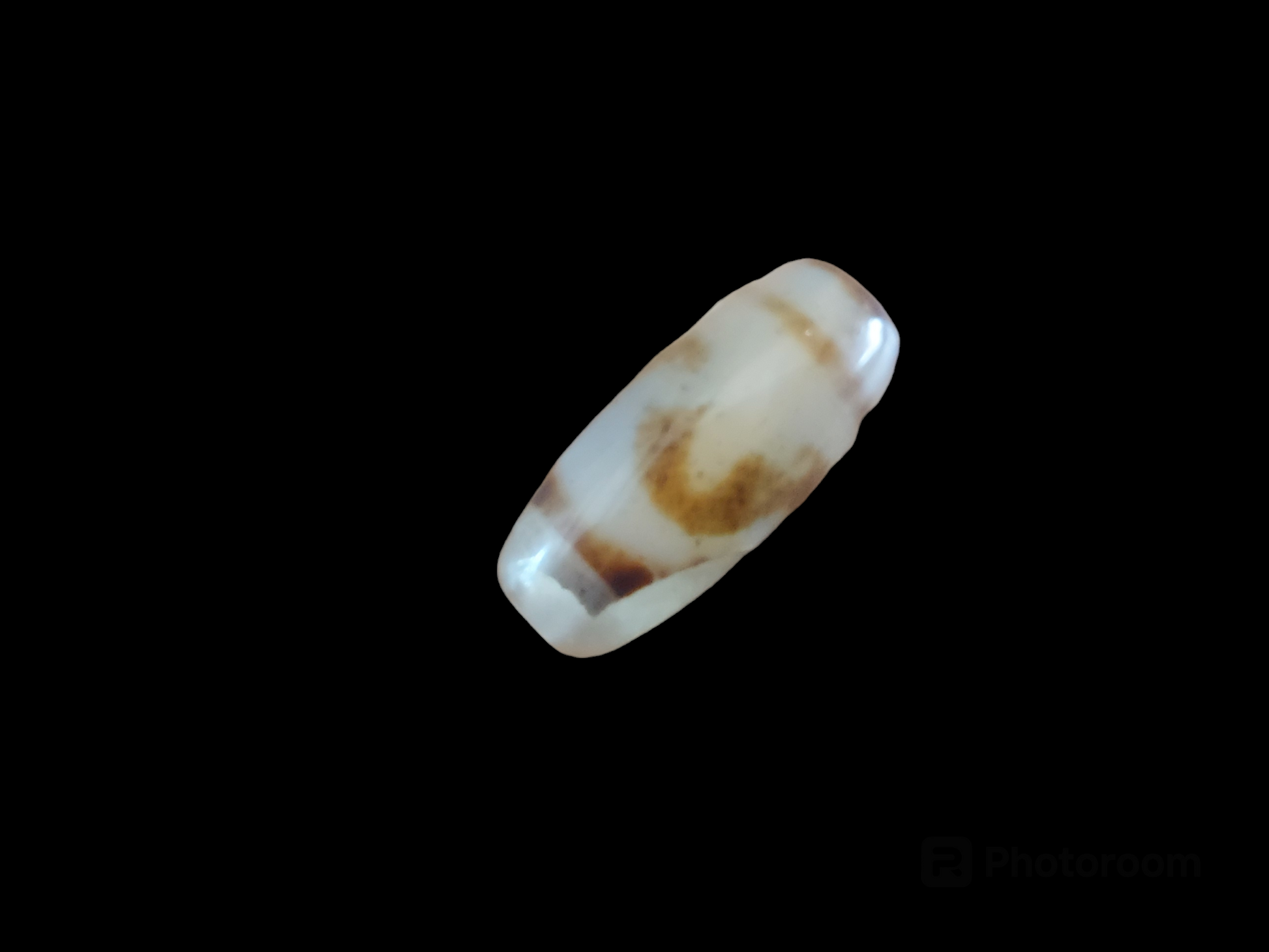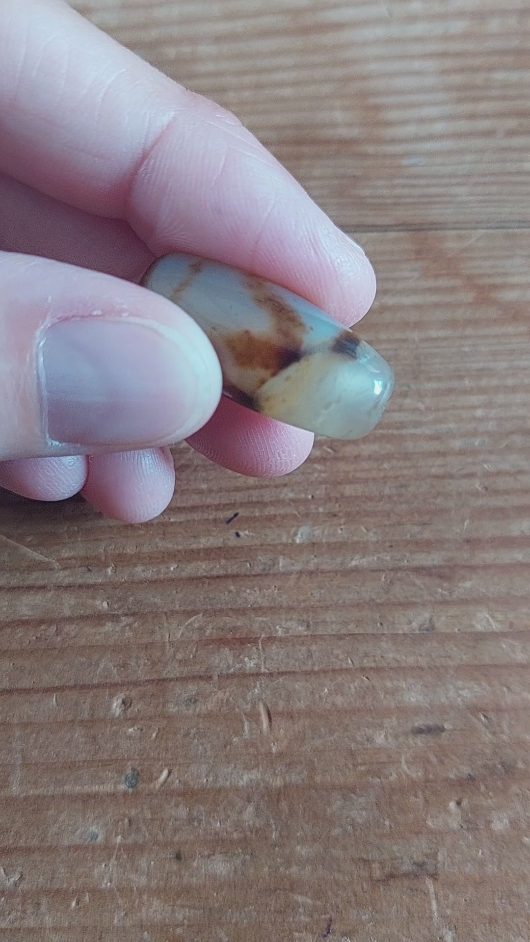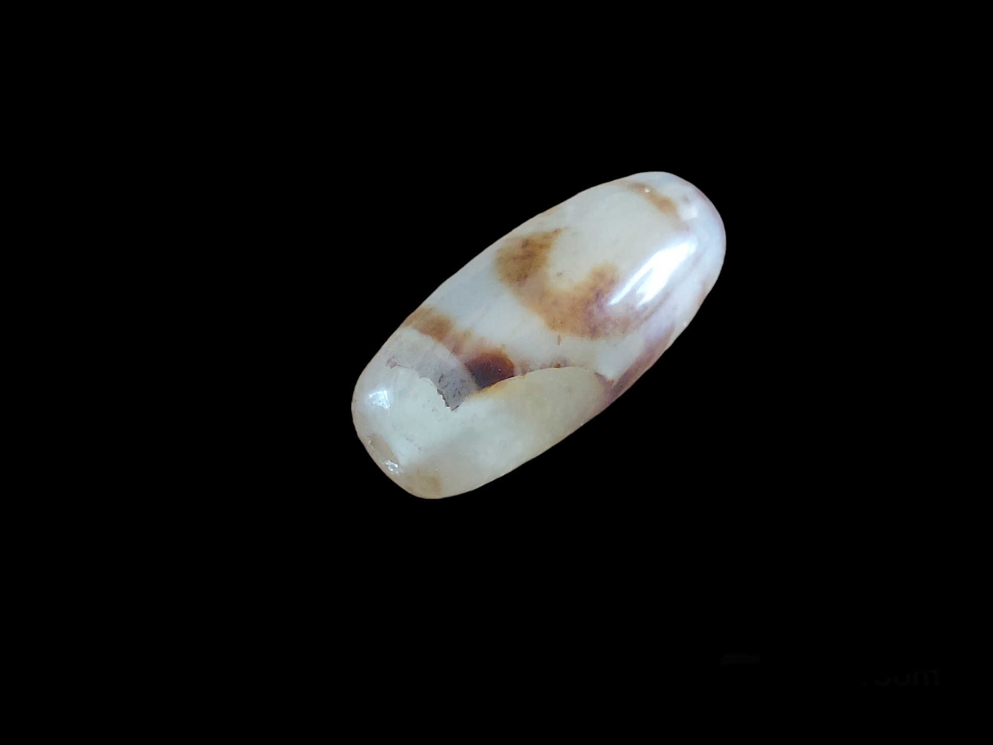Material: natural agate, semi-transparent white base with brown decoration.