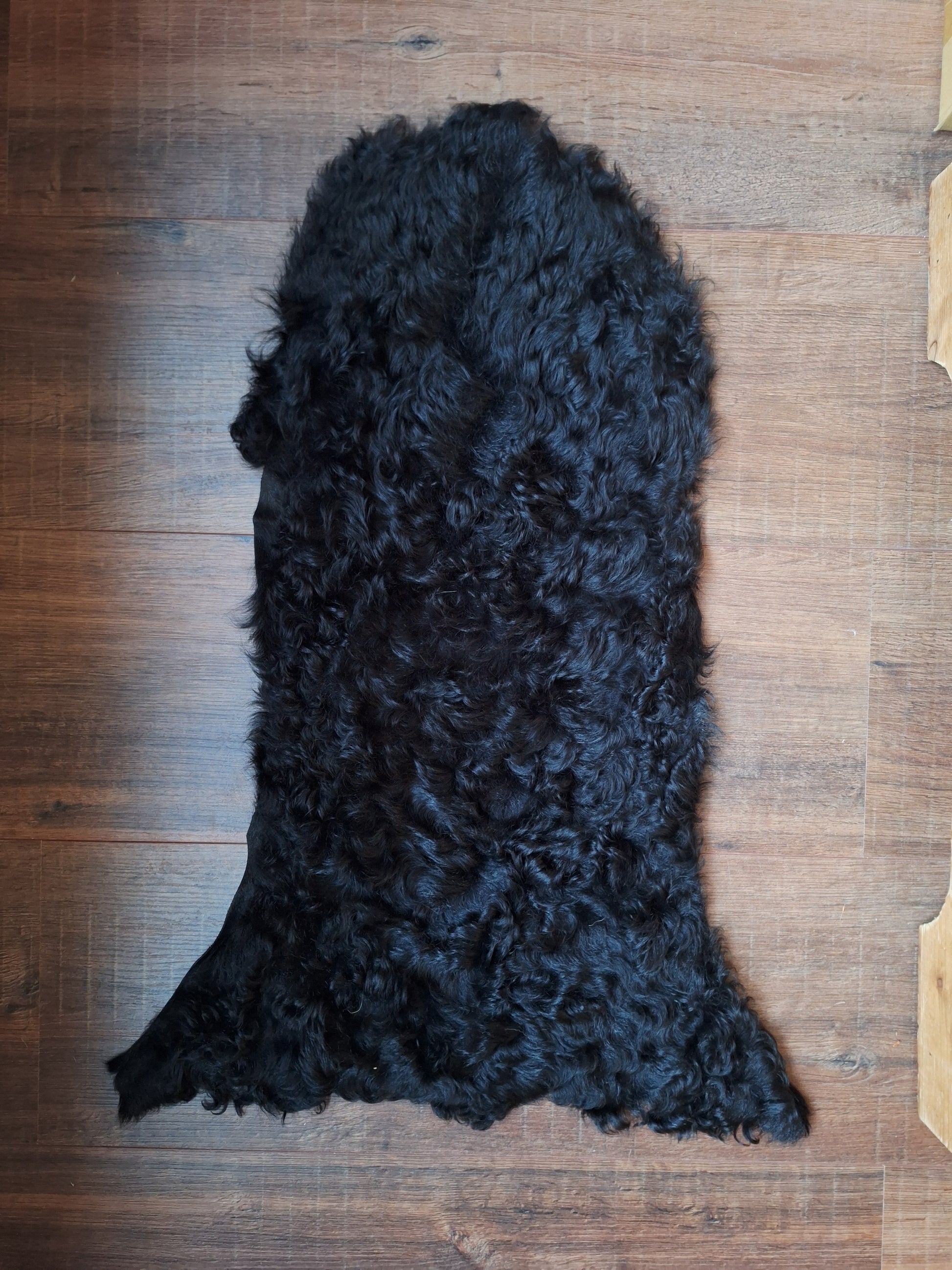Very nice hide from a black tigrado sheep. This type of sheep has a spanish origin an is known for its tight curls.