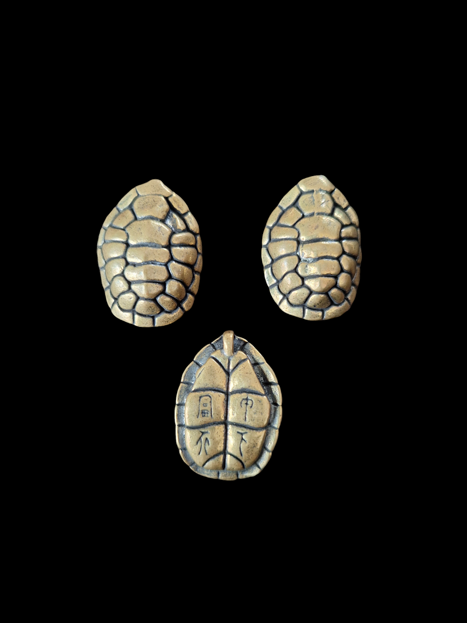 Bronze pendant in the shape of a turtle's shell. In a lot of (especially) eastern traditions, the turtle holds very significant symbolism. In Chinese culture, the Turtle is one of the Four Auspicious Animals, next to Phoenix, Dragon and Tiger. They are seen as the deities and/or guardians of the four cardinal directions. The Turtle being the guardian of the North.