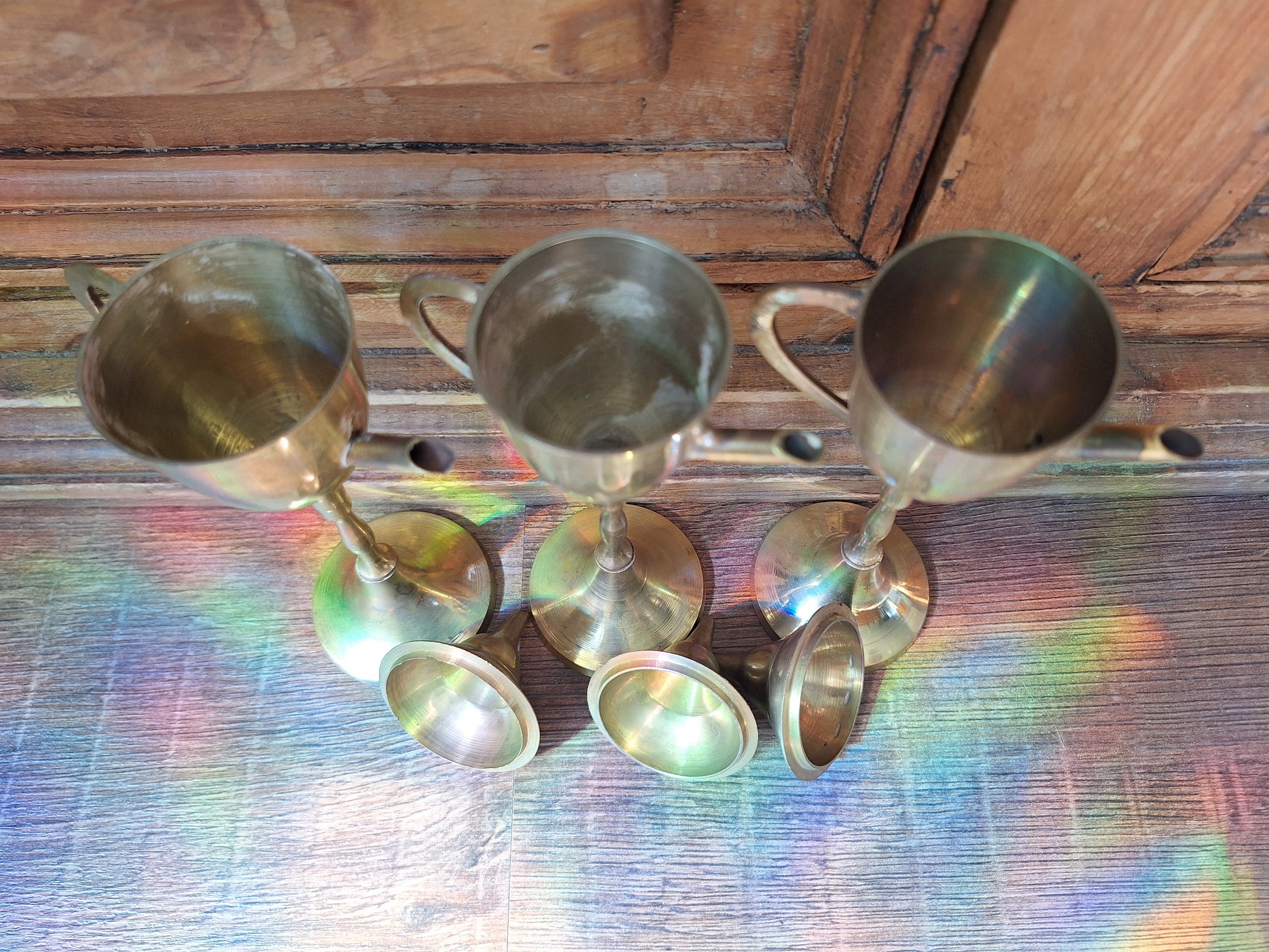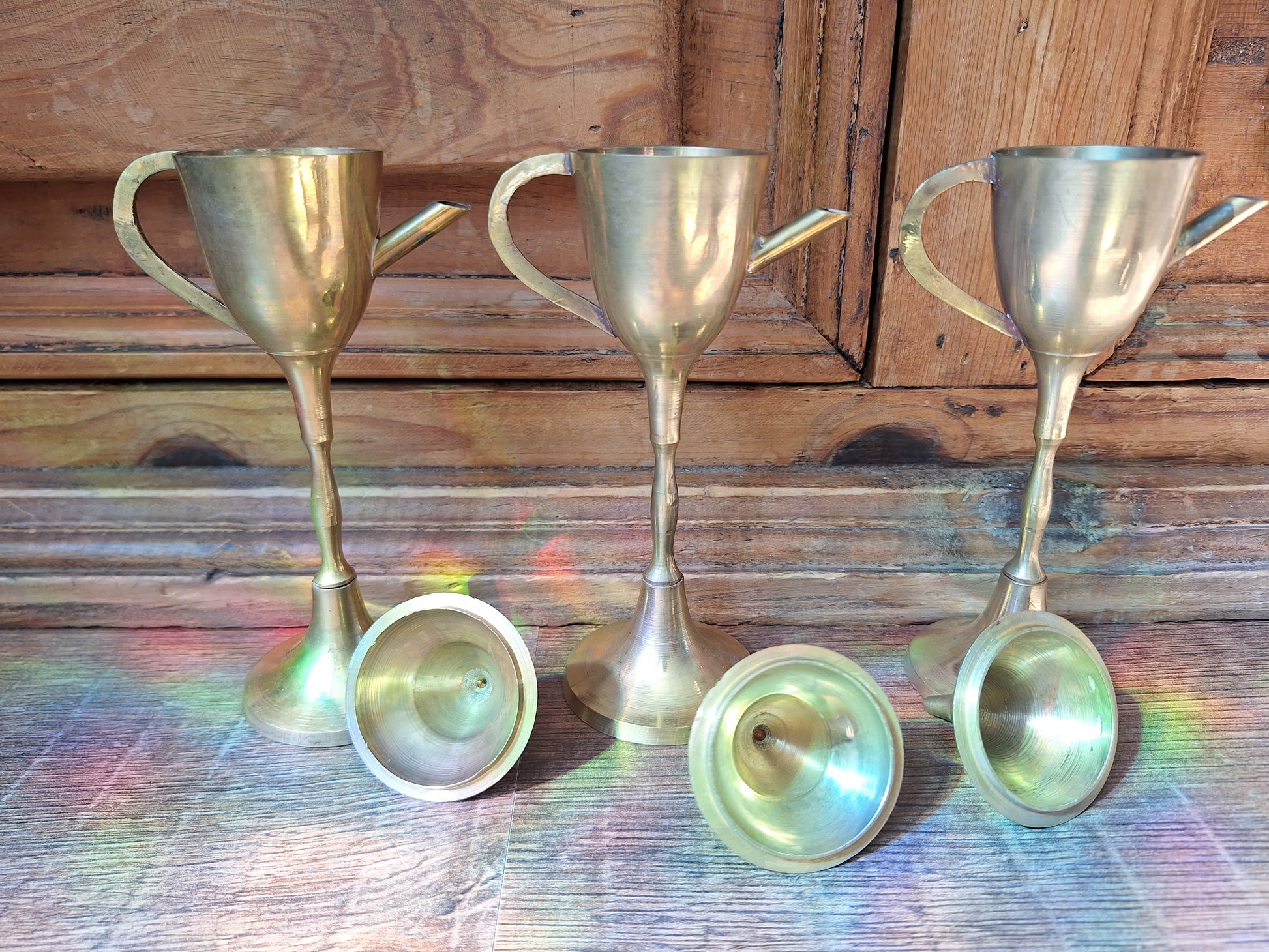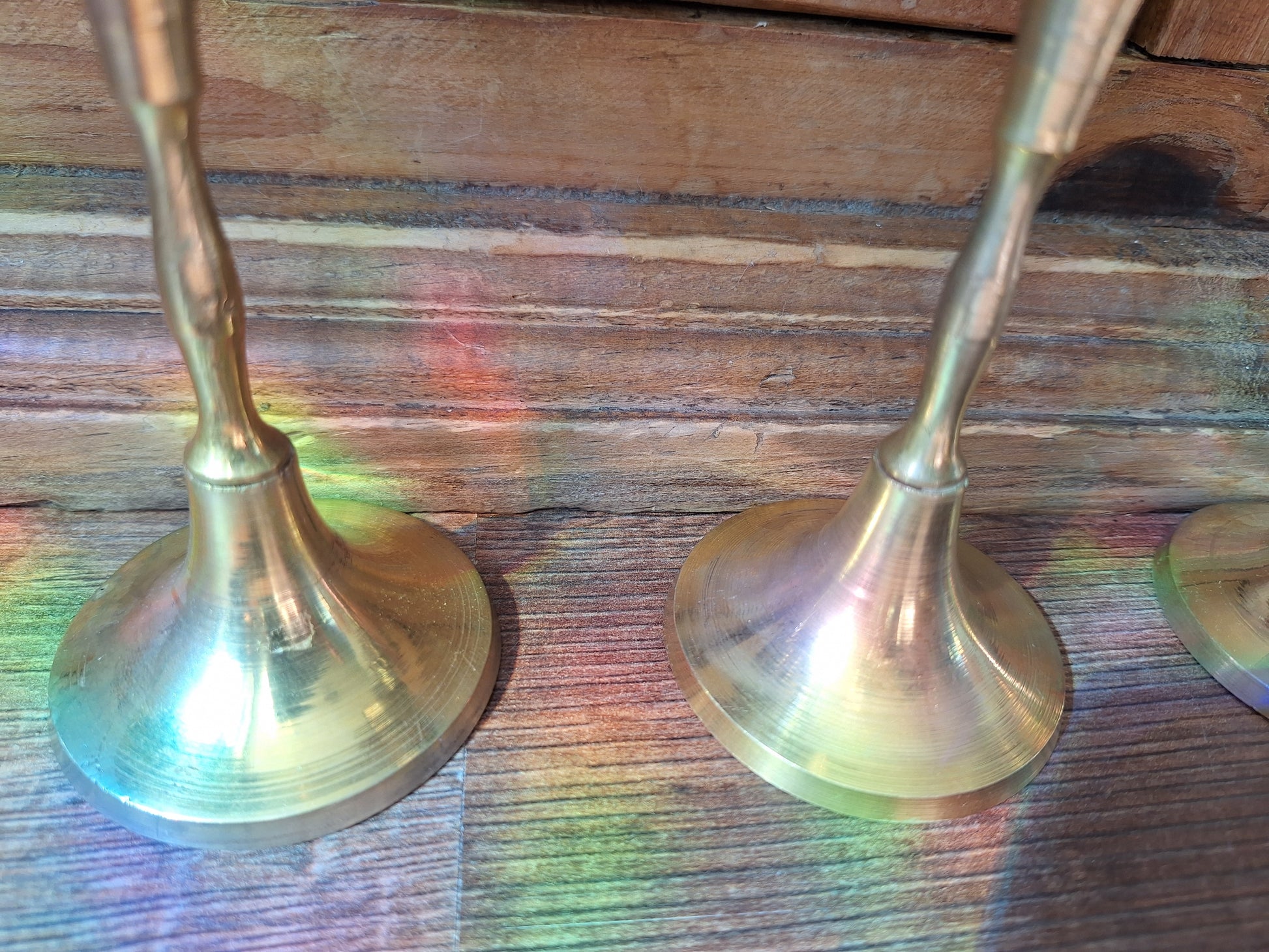 These lamps are from vintage origin. They have been made from brass and show some minor signs of their previous usage. But overall they are in good condition.