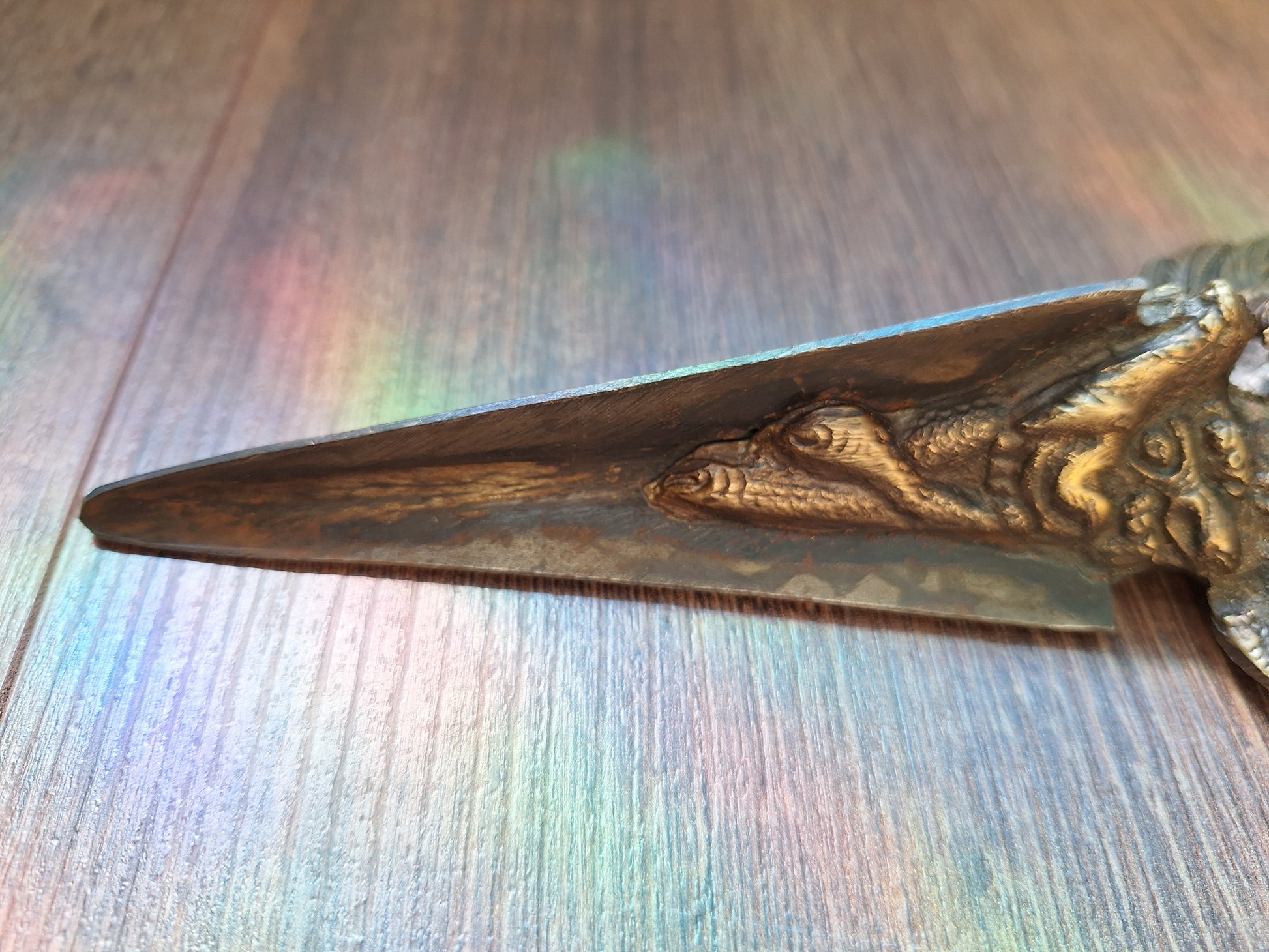 This phurba measures 25 centimeters length and 10 centimeters width and has an astonishing heavy weight of 864 grams.