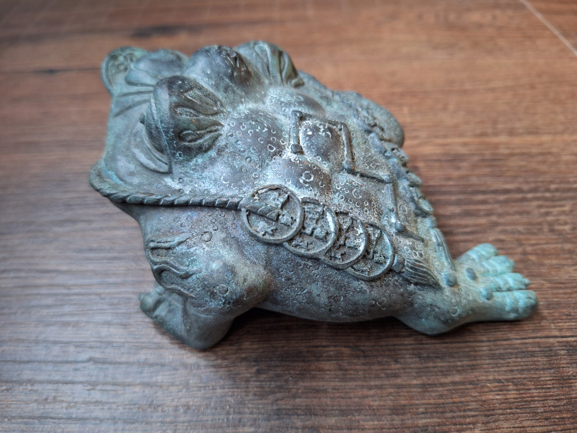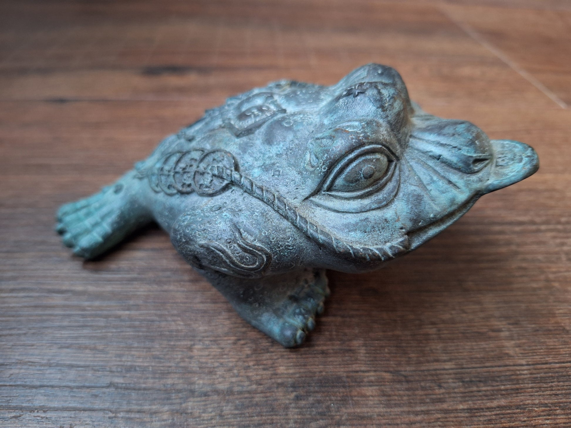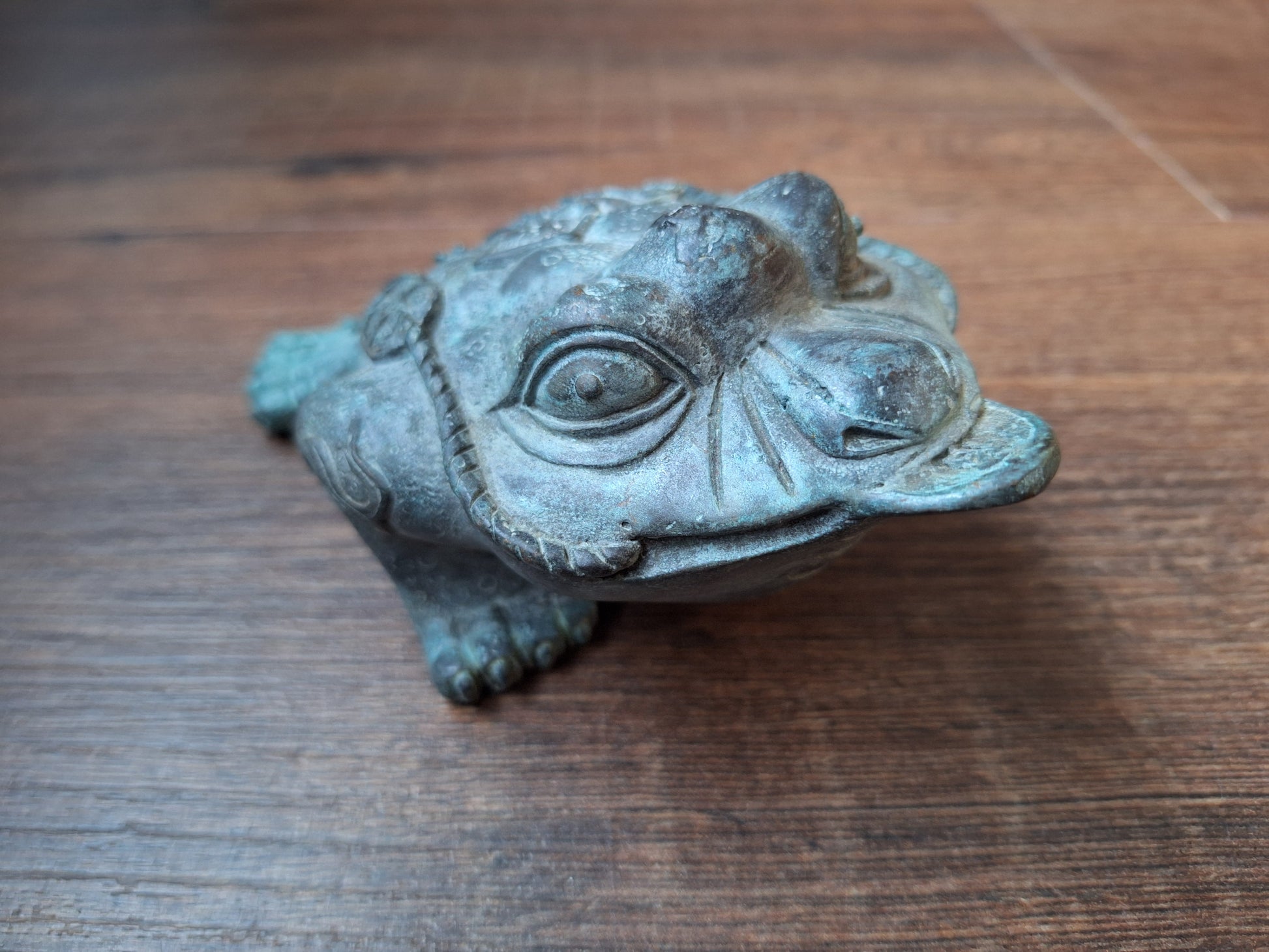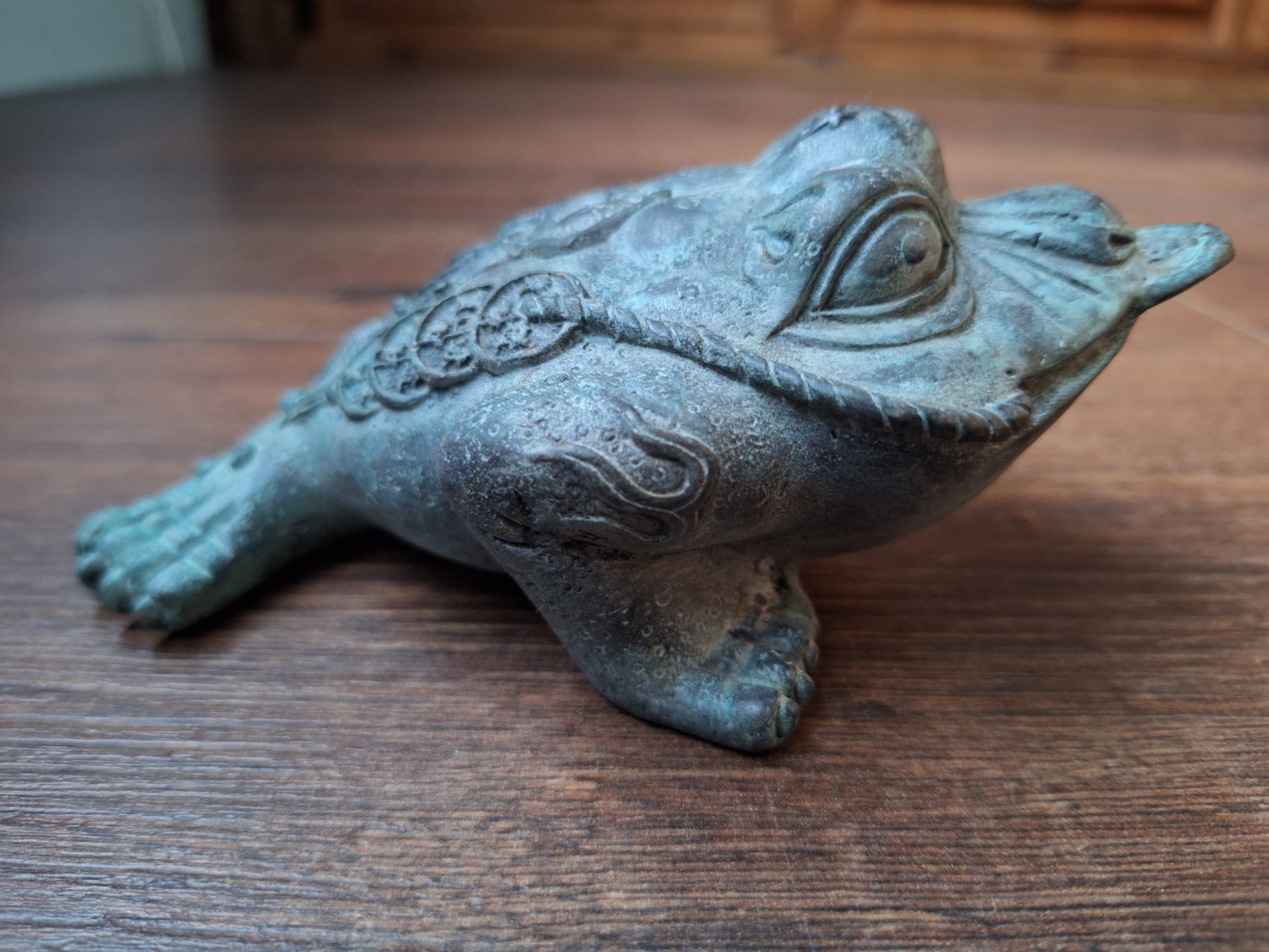 Very nice bronze statue depicting the Chinese Money Frog, a well-known emblem from Feng Shui iconography also known as Chan Chu or Jin Chan.