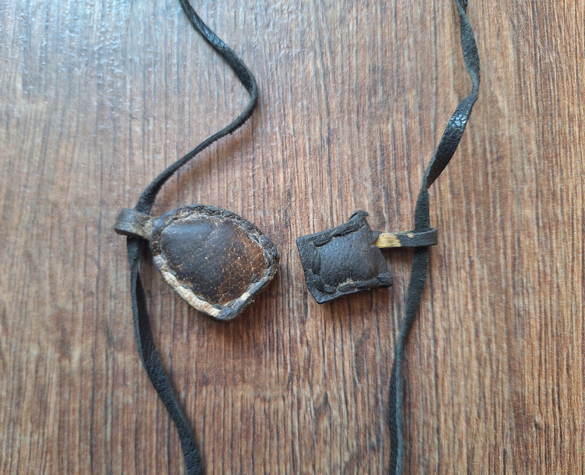 This amulet necklace is approximately 61 centimeters long (measured without the pendant) and weighs 31 grams. The central pendant with Amitabha Buddha is approximately 4 x 3 centimeters in size and the leather 'pillows' are 1,5 x 2 and 2,3 x 2,8 centimeters.