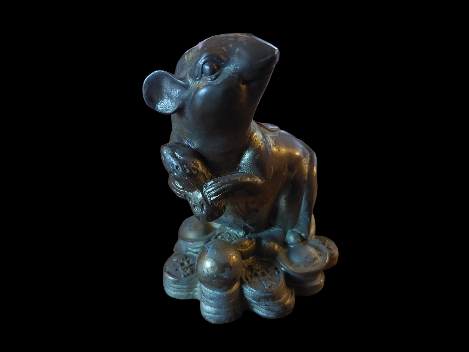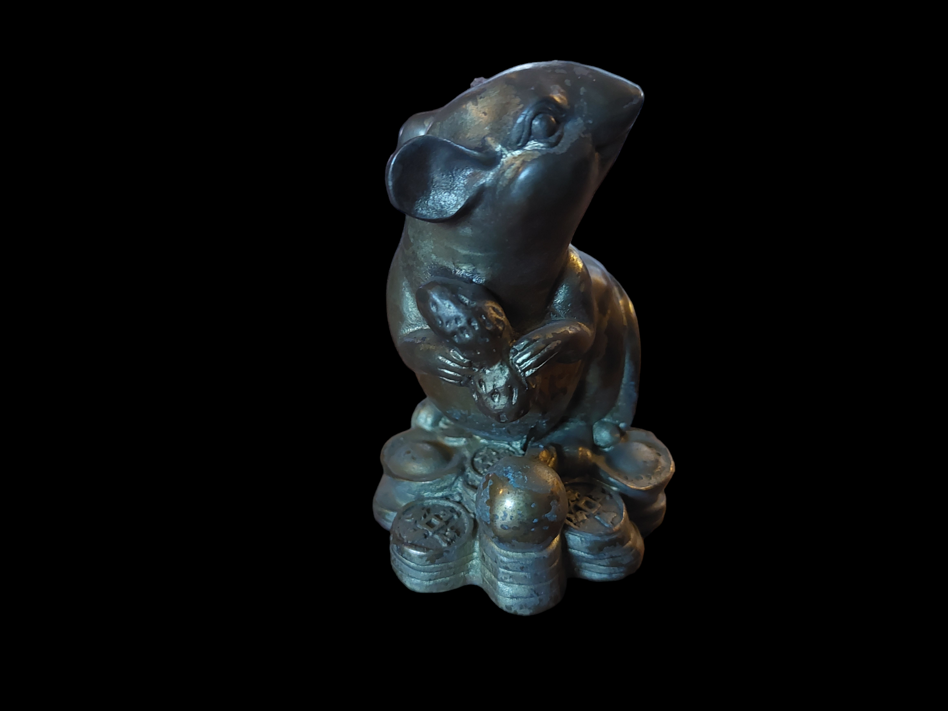 Vintage brass Feng Shui money statue Rat