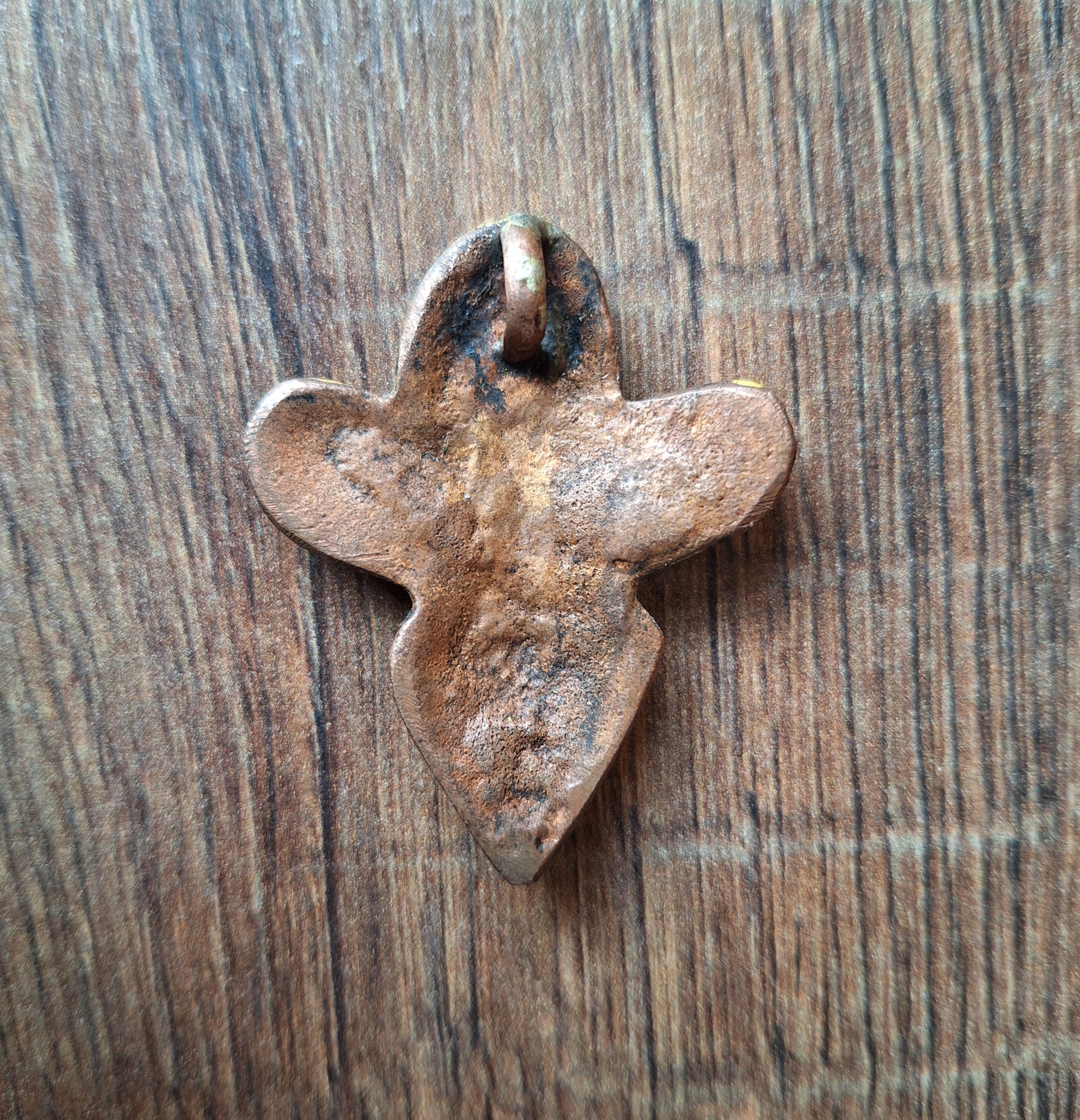 This pendant can be worn as a personal amulet, or be attached to your ritual clothing or attributes. It is made from red copper, which has been painted gold on the frontside (the natural color can be seen on the backside). This pendant comes from Nepal and is from vintage origin, therefore it might show some signs of its age and previous usage.
