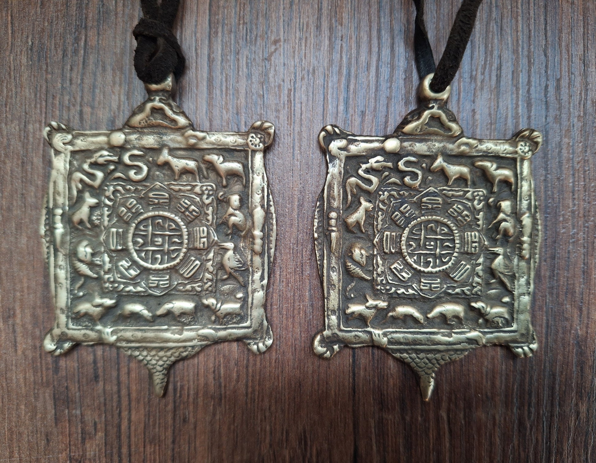 3) In the outside circle the 12 animals from the Eastern zodiac can be seen. Just like the circular arrangement of the trigrams, also this motive adds to the idea of heavenly order. But also its presence, when used on shamanic mirrors, symbolizes control over time and space, an important core principle in the practice of shamanism.