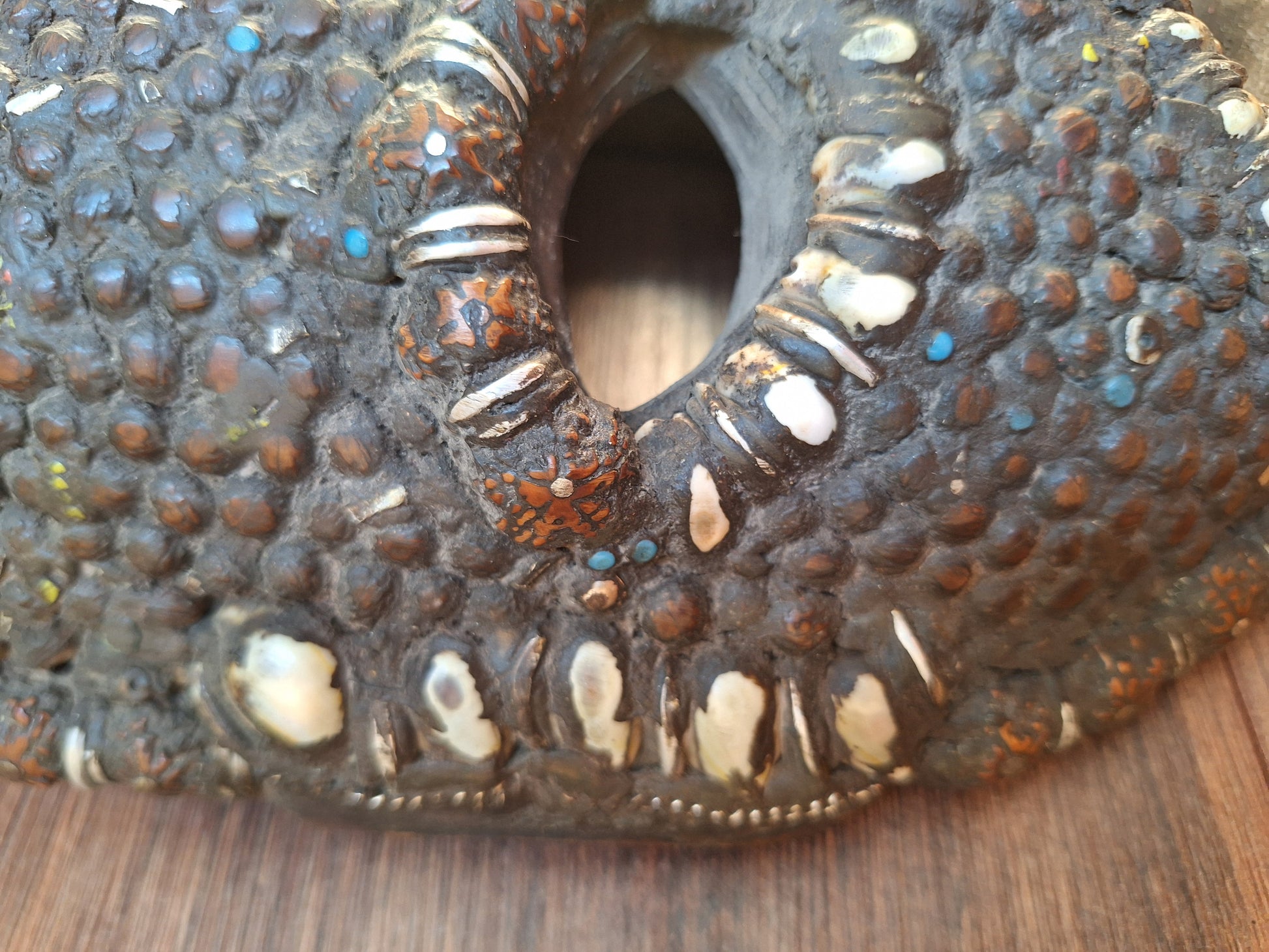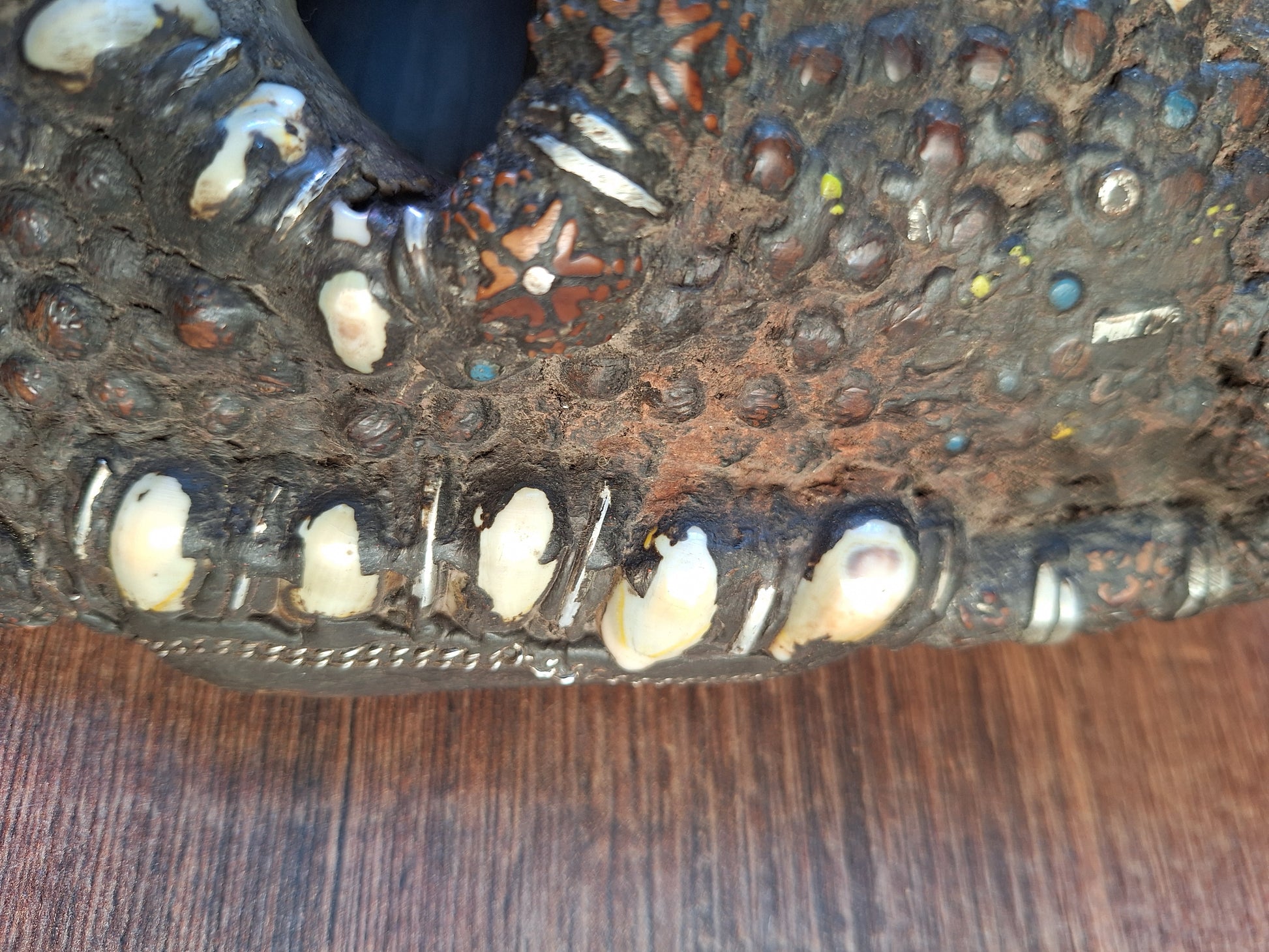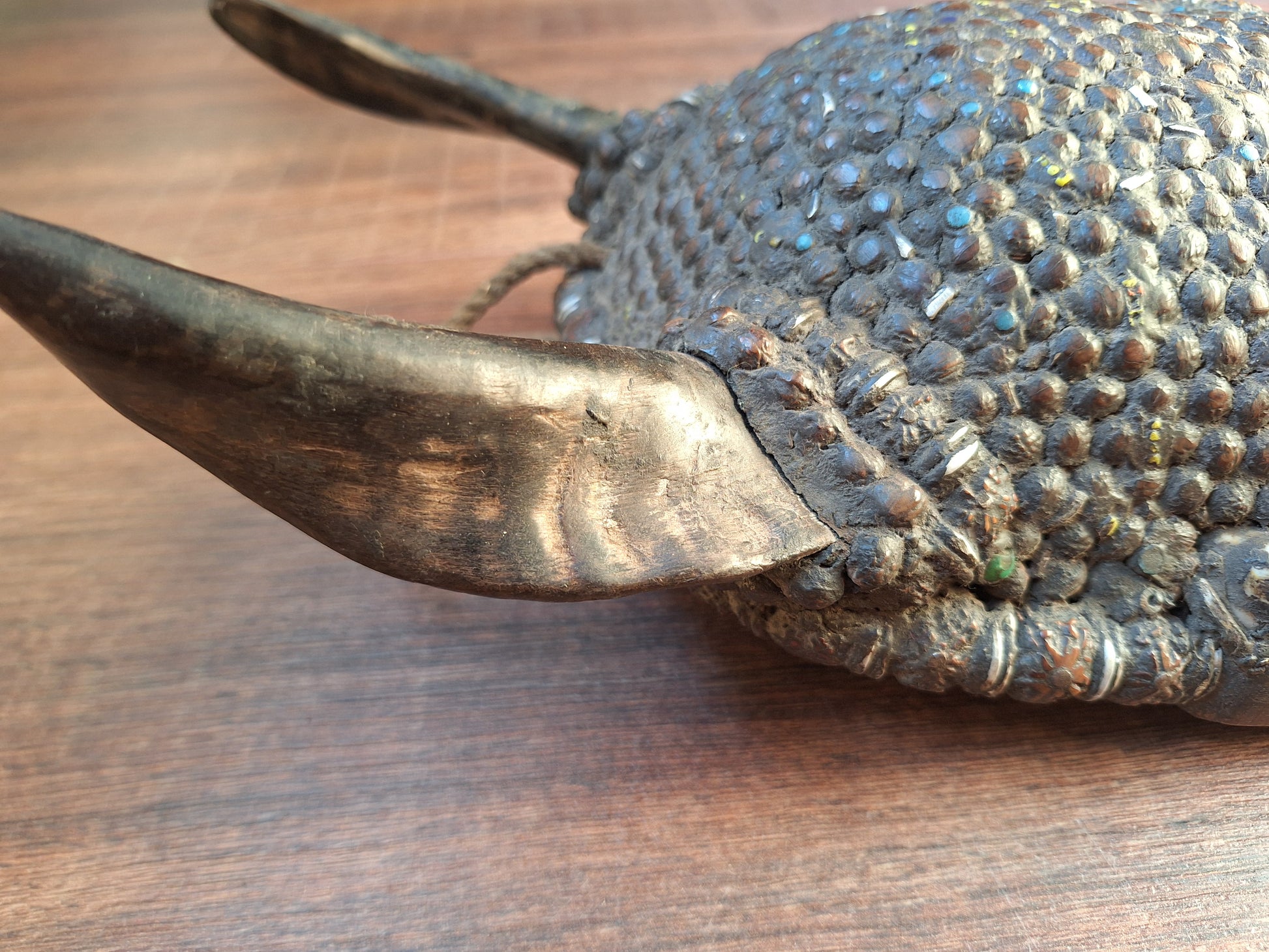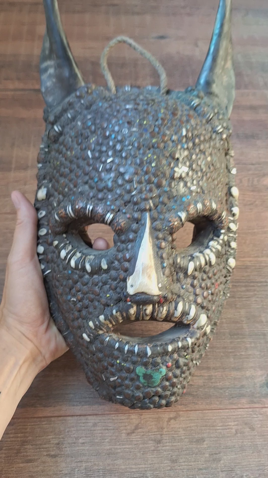 Vintage Nepalese wrathful spirit mask with seeds, shells and horns #1