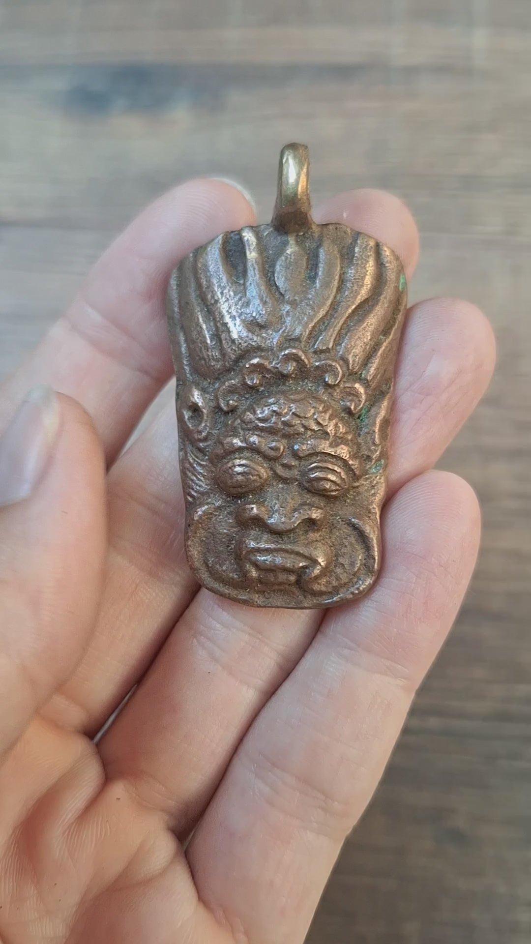 Very nice thick red copper pendant with the face of Mahakala.