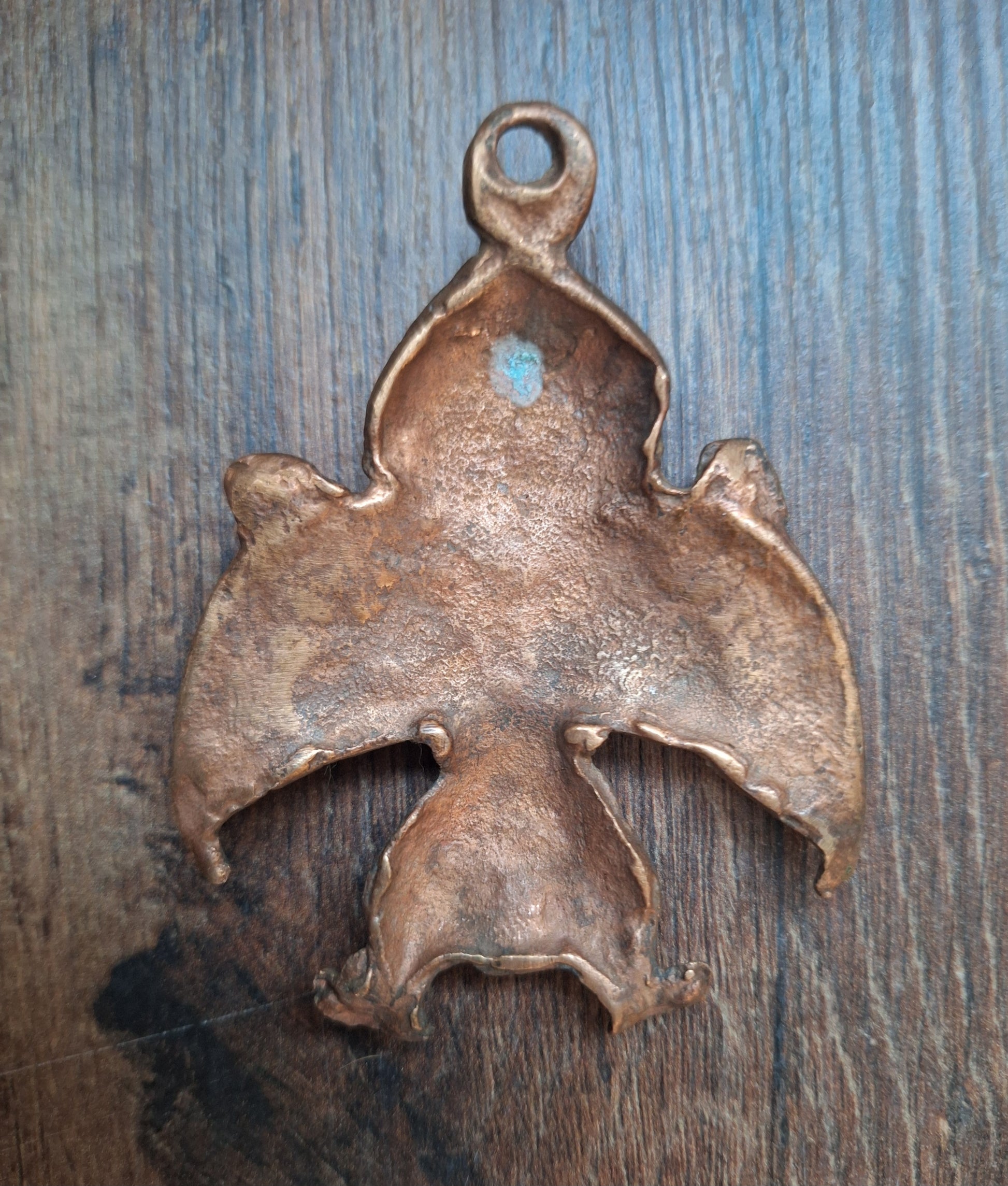 This pendant is quite a big one; 70 millimeters wide and 95 millimeters high. It weighs 100 grams. Due to this size and weight, this one might be a bit too big to wear around your neck as a personal amulet, but it can of course be attached to your ritual clothing or attributes.