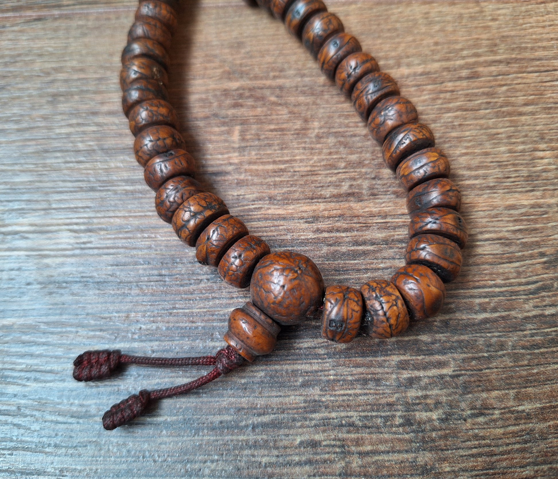 Vintage Nepalese polished rudraksha mala
