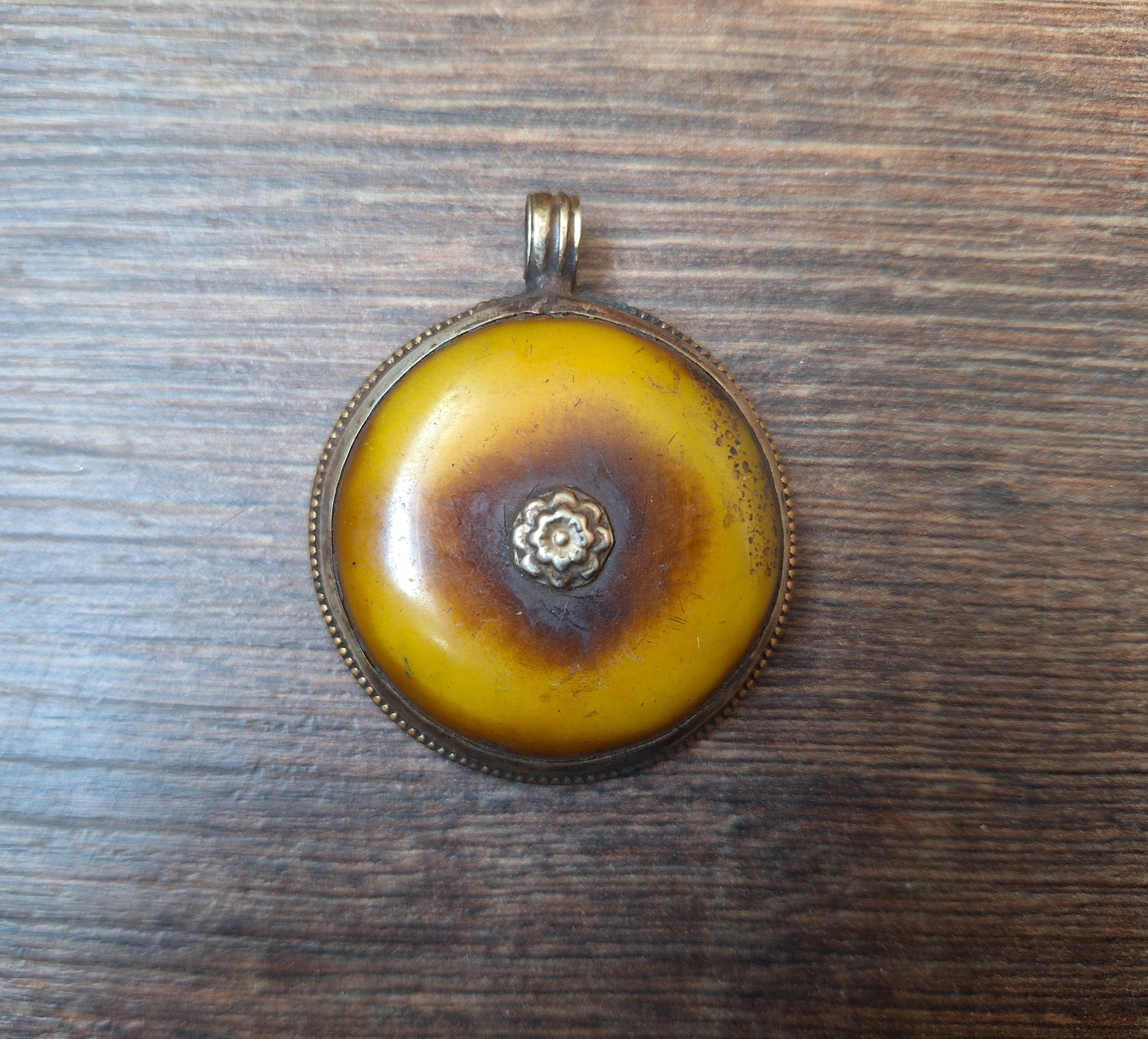 Vintage Tibetan pendant made with a piece of beautiful copal. Handmade into a pendant with a Tibetan silver setting.