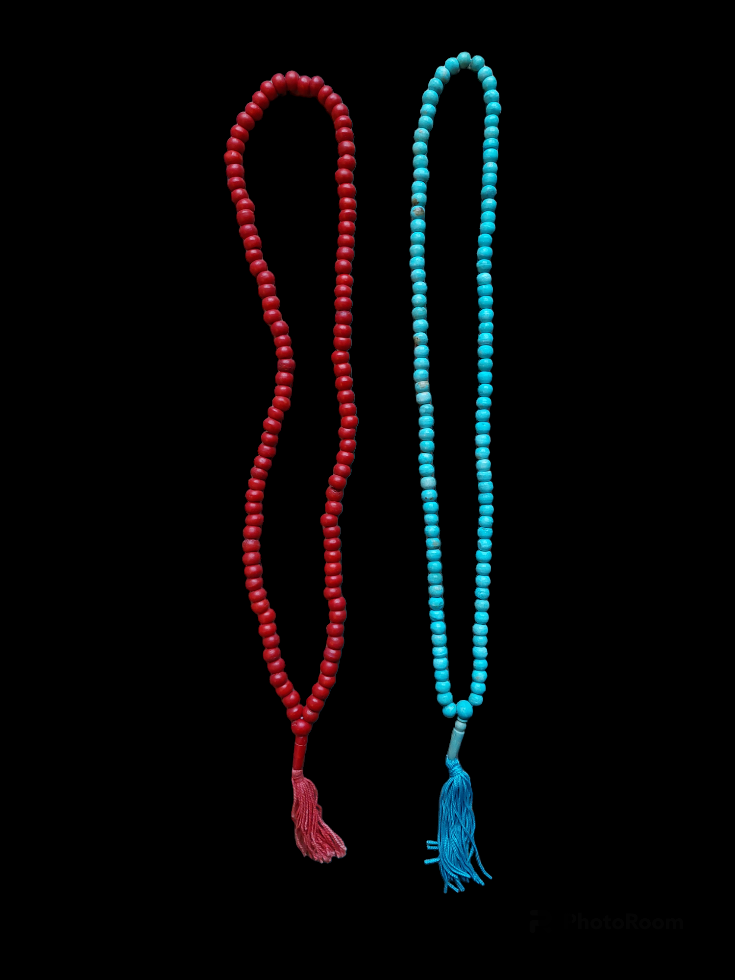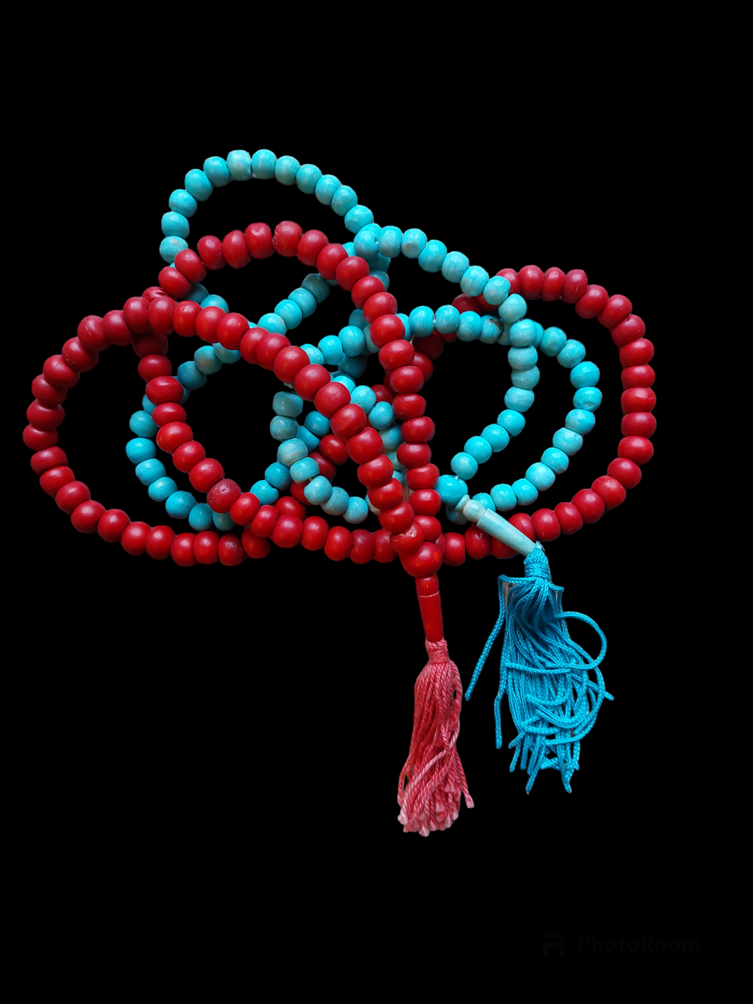 Simple but elegant Tibetan mala's made with 108 beads from yak bone, painted in bright colors.