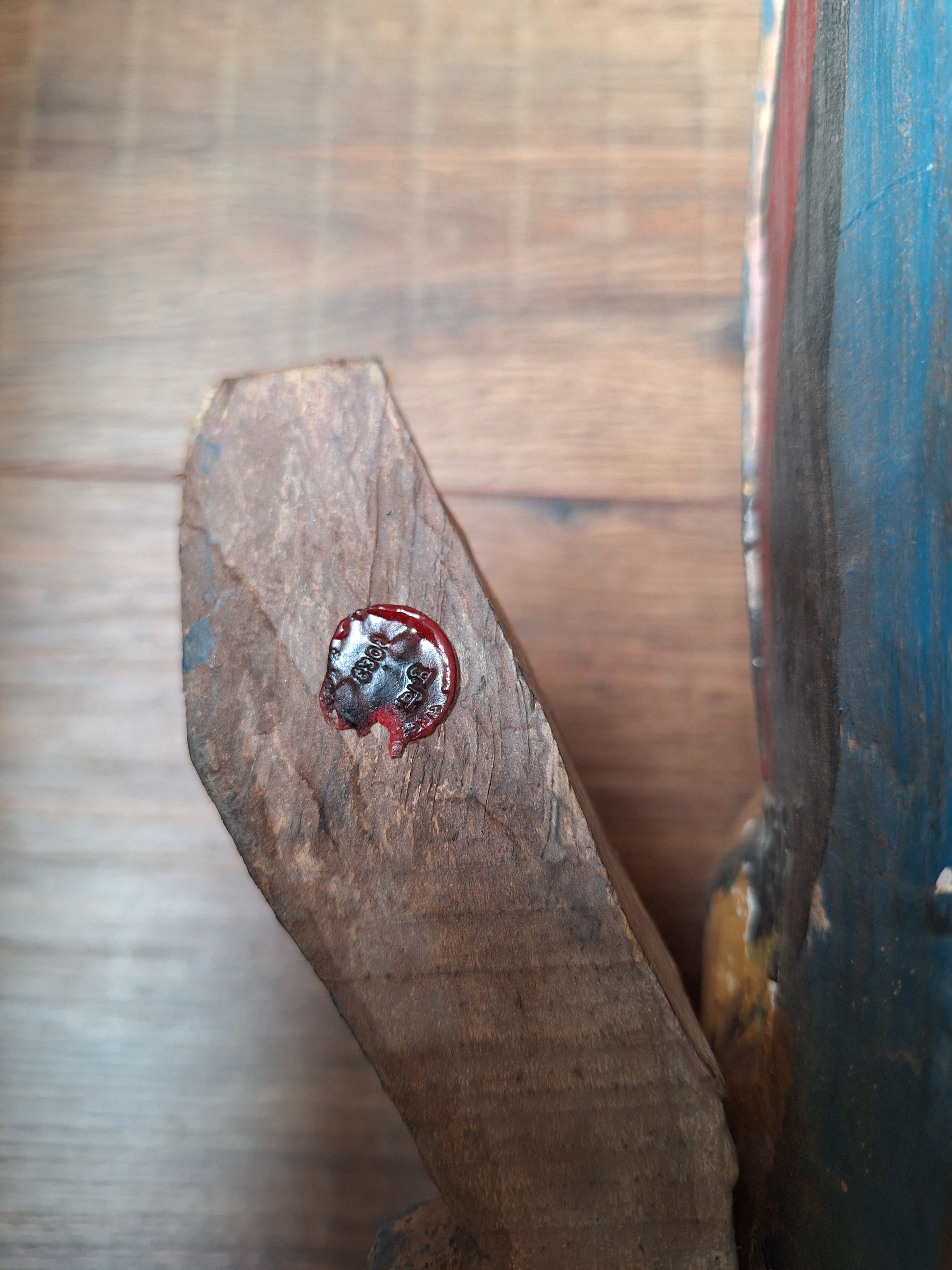 On the back the remnants of an export seal from the Nepalese Bureau of Cultural Relics can be seen, indicating the authenticity and heritage of this item.