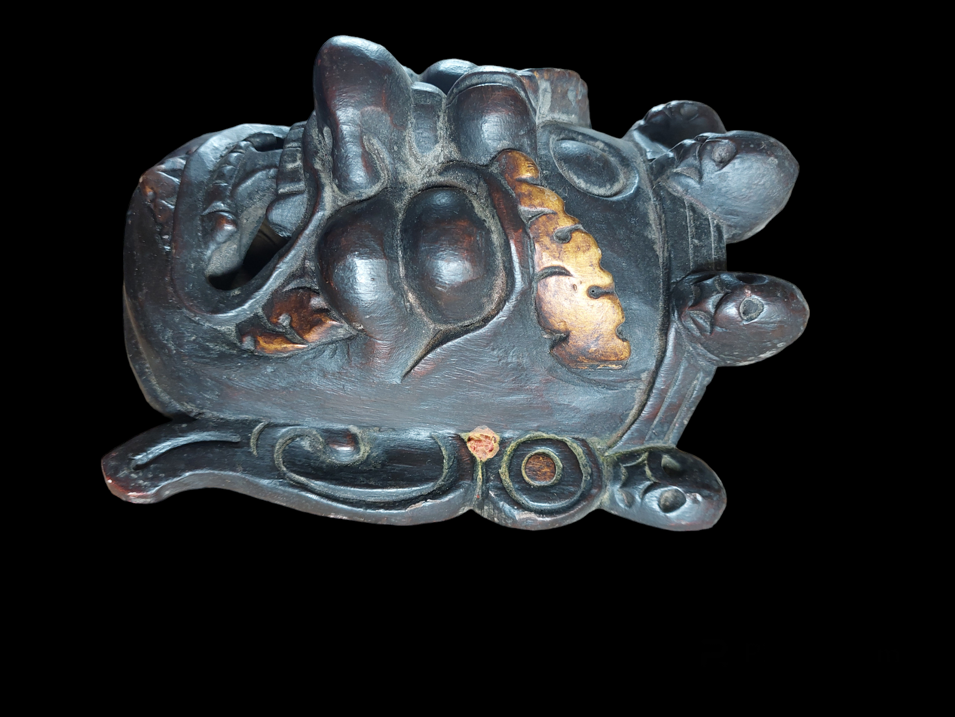 The name ‘Mahakala’ consists of two Sanskrit words; ‘Maha’ meaning ‘great’ and ‘kala’ meaning ‘time’ or ‘death’. Mahakala can thus be seen as a personified form of Time itself; he is the ultimate destructive power, not bound or regulated by anything or anyone else and he eventually comes for everyone without distinction.