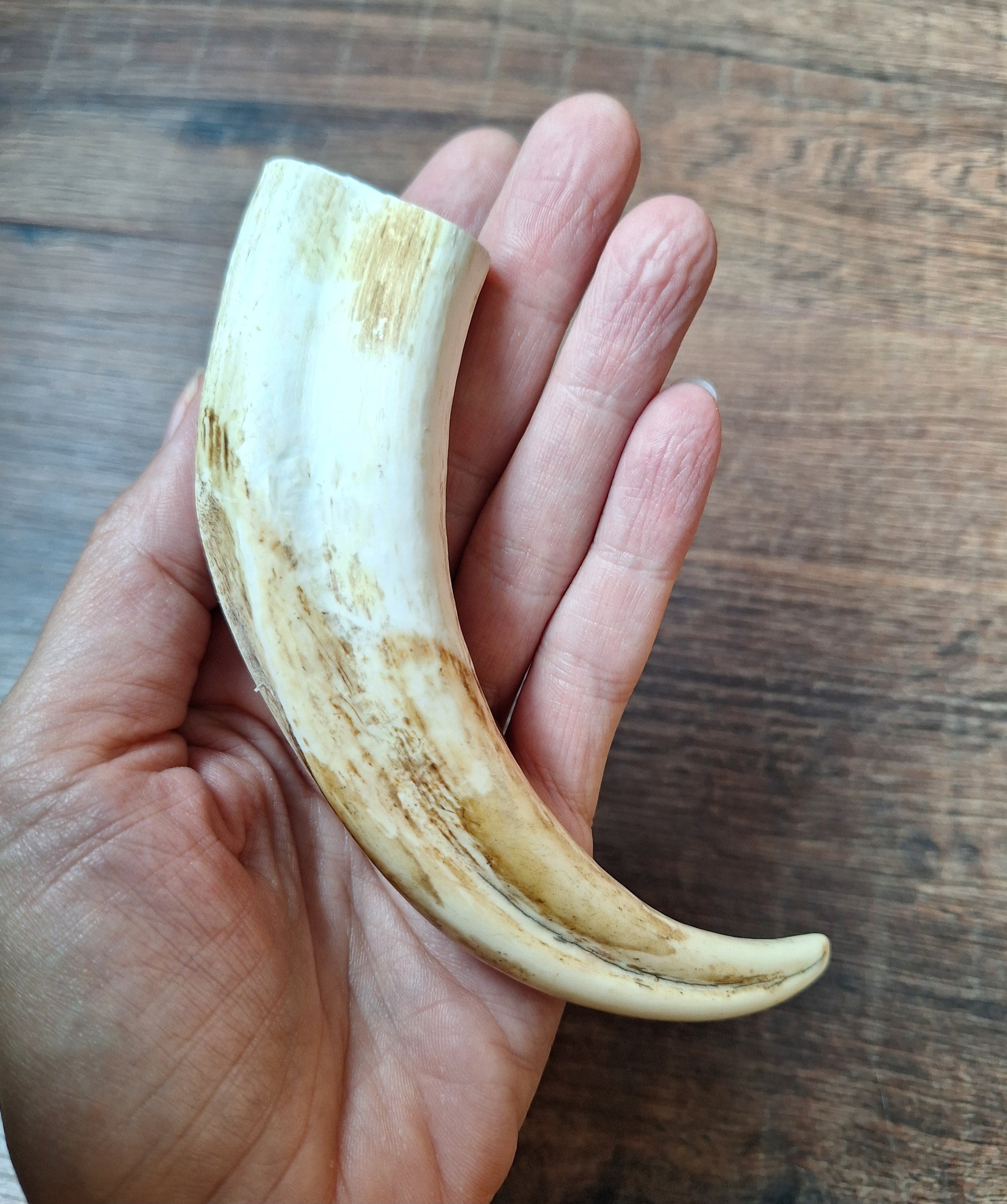 To be used in all your personal crafting, amulet- or jewelry making purposes. Or of course to place on your altar or in your cabinet of curiosities simply 'as-is'. Please note; this tusk doesn't have a hole already drilled in it, so to use it for jewelry-making purposes you would first have to do so yourself.