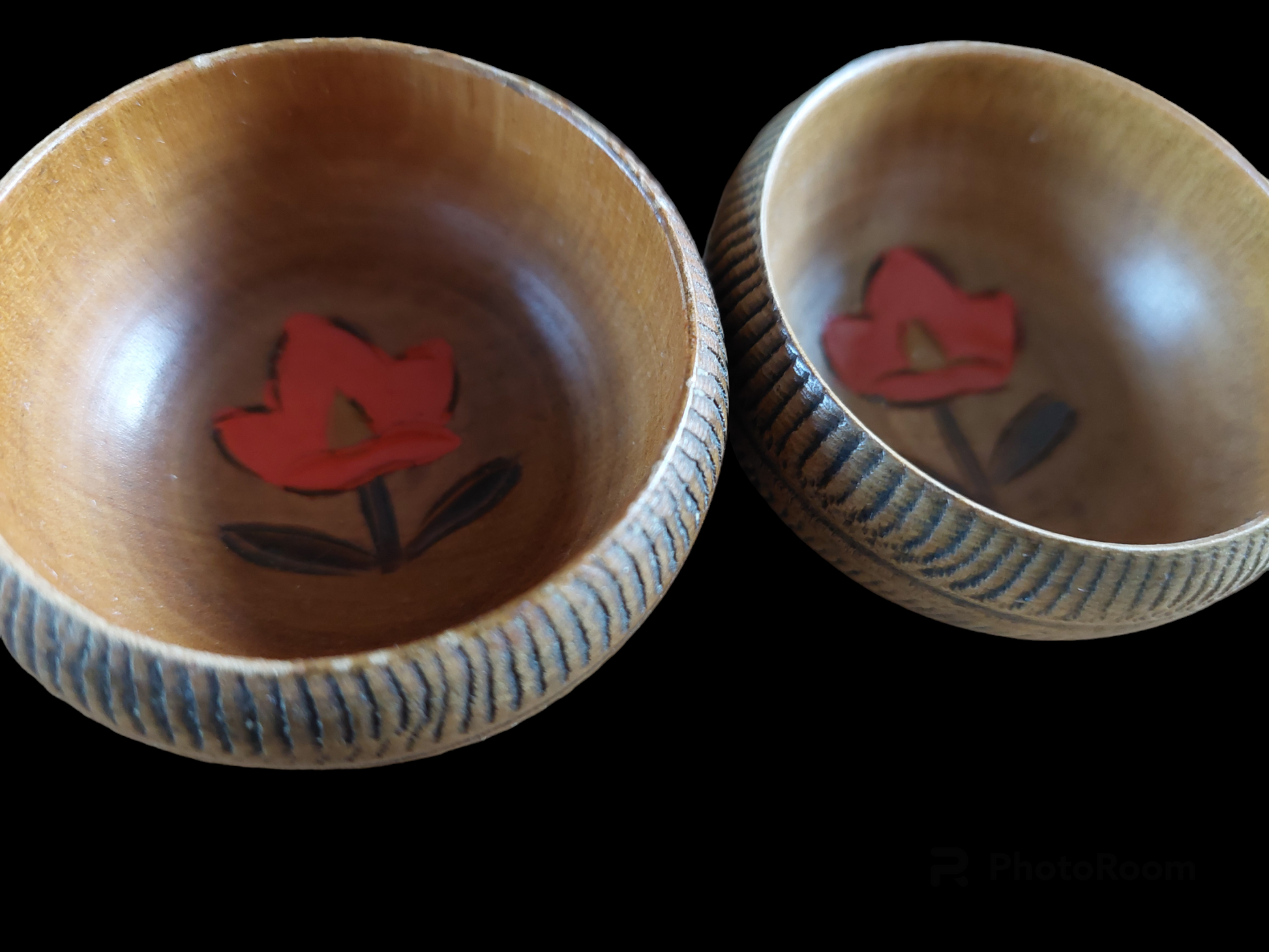 Very nice little wooden bowls, from vintage origin, that can be perfectly used as offering bowls on your altar. The outside has a nice carved decoration and on the inside there is a handpainted decoration from a red tulip, a typical Dutch flower. So these little bowls might be just perfect for making offerings to your Dutch ancestors.